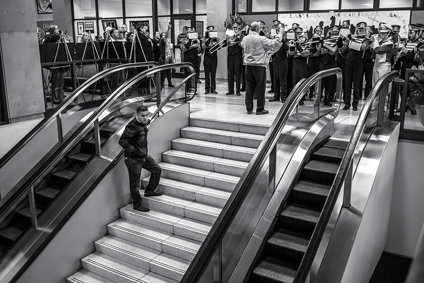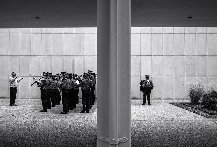 An exhibit of JFK-related art is on display at the Oak Cliff Tower for a few more weeks. It is free and open to the public. This past Friday, the Bishop Dunne High School marching band performed in the tower’s lobby during a ceremony to mark the 50th anniversary of the JFK assassination. Advocate photo editor Danny Fulgencio brought back these photos from the morning.