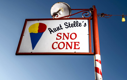 Our neighborhood’s iconic snow cone stand, Aunt Stelle’s, is an annual ritual. We’ll wait in line for half an hour, dripping