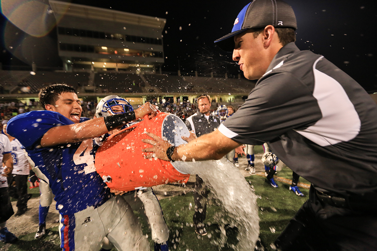 - Alejandro Patino pours water on his assistant coach.