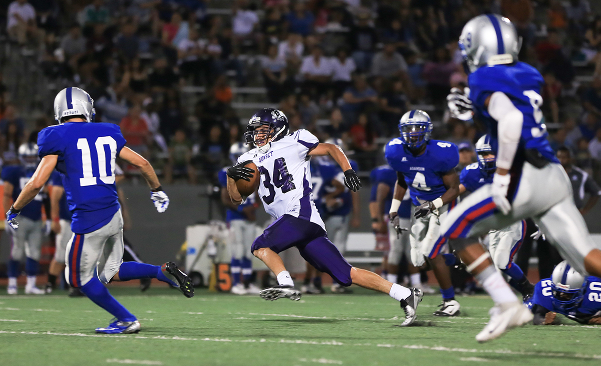 - Sunset running back Julio Gonzalez finds an opening.