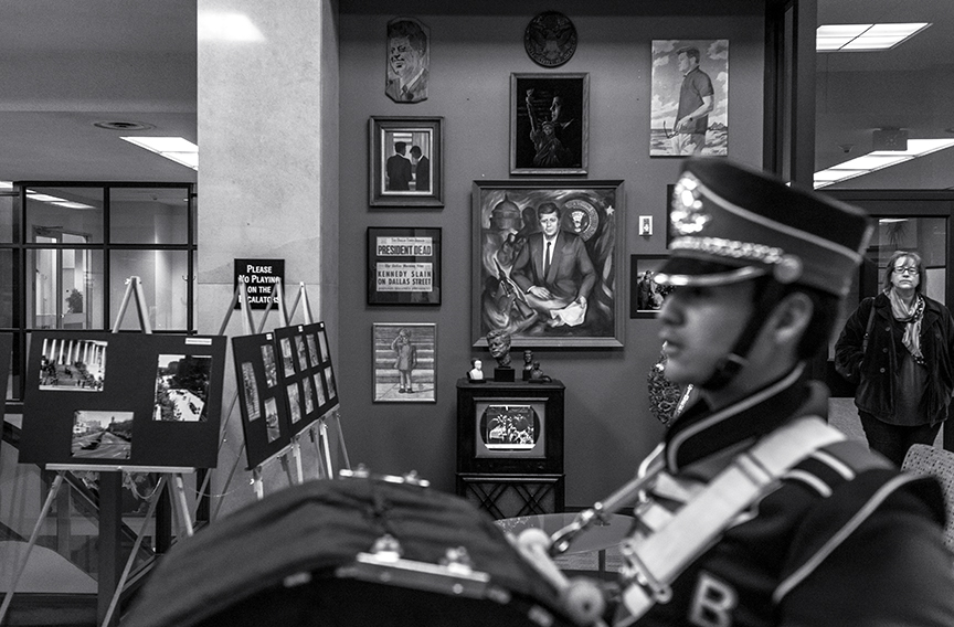 An exhibit of JFK-related art is on display at the Oak Cliff Tower for a few more weeks. It is free and open to the public. This past Friday, the Bishop Dunne High School marching band performed in the tower’s lobby during a ceremony to mark the 50th anniversary of the JFK assassination. Advocate photo editor Danny Fulgencio brought back these photos from the morning.
