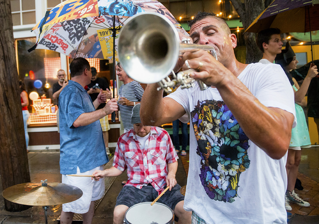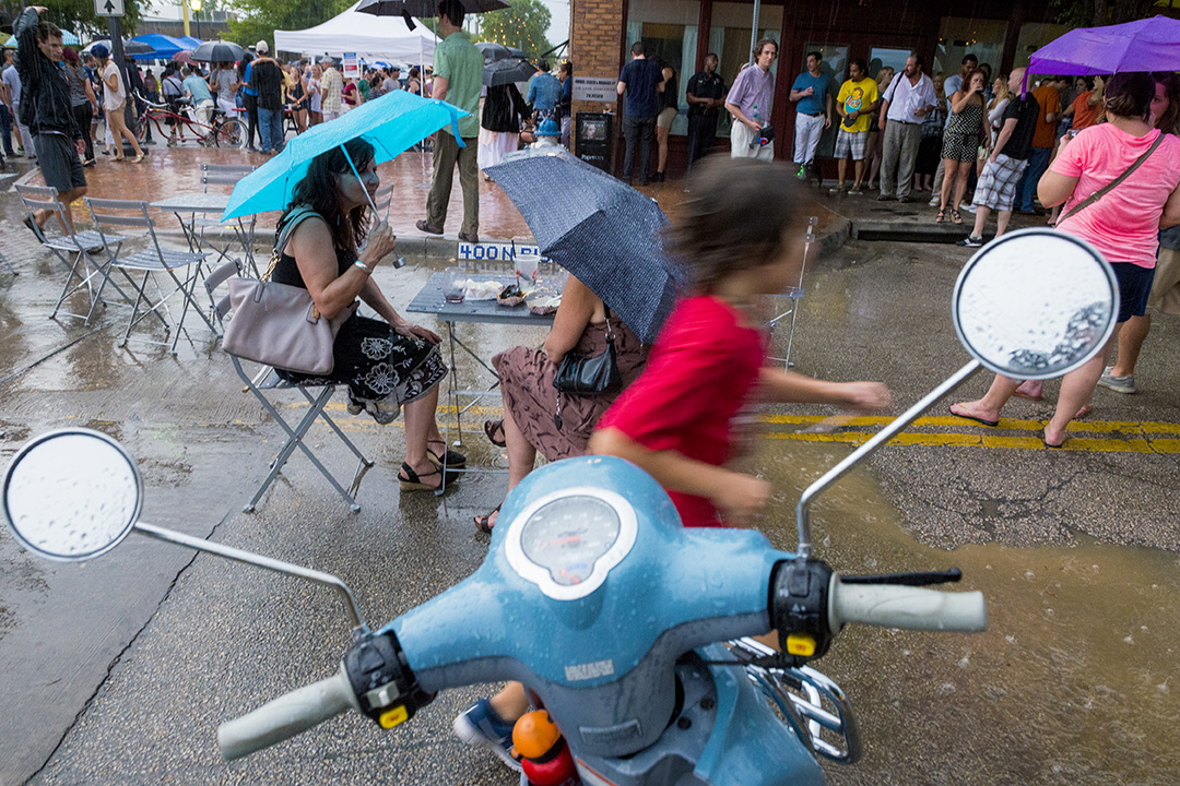 This year’s Bastille Day celebration felt especially European, as a downpour just before the event cooled things off. The subsequent drizzle brought out umbrellas and wellies and made for a muddy petanque court but provided a festive atmosphere.