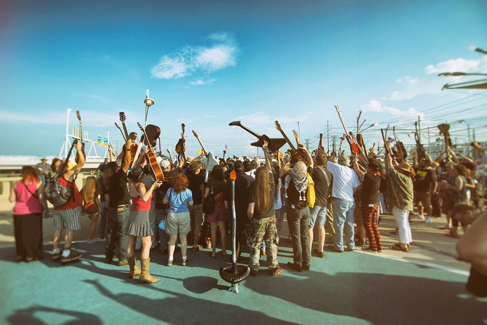 Hundreds of people showed up to the Continental Bridge Park on July 4 for the Open Carry Guitar Rally, a mockery of open-carry gun zealots. Neighborhood resident/legendary rock-n-roller Barry Kooda organized the event.