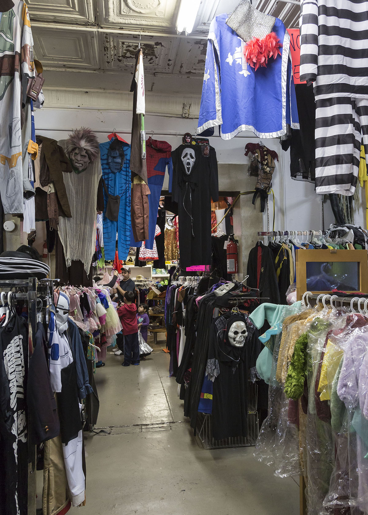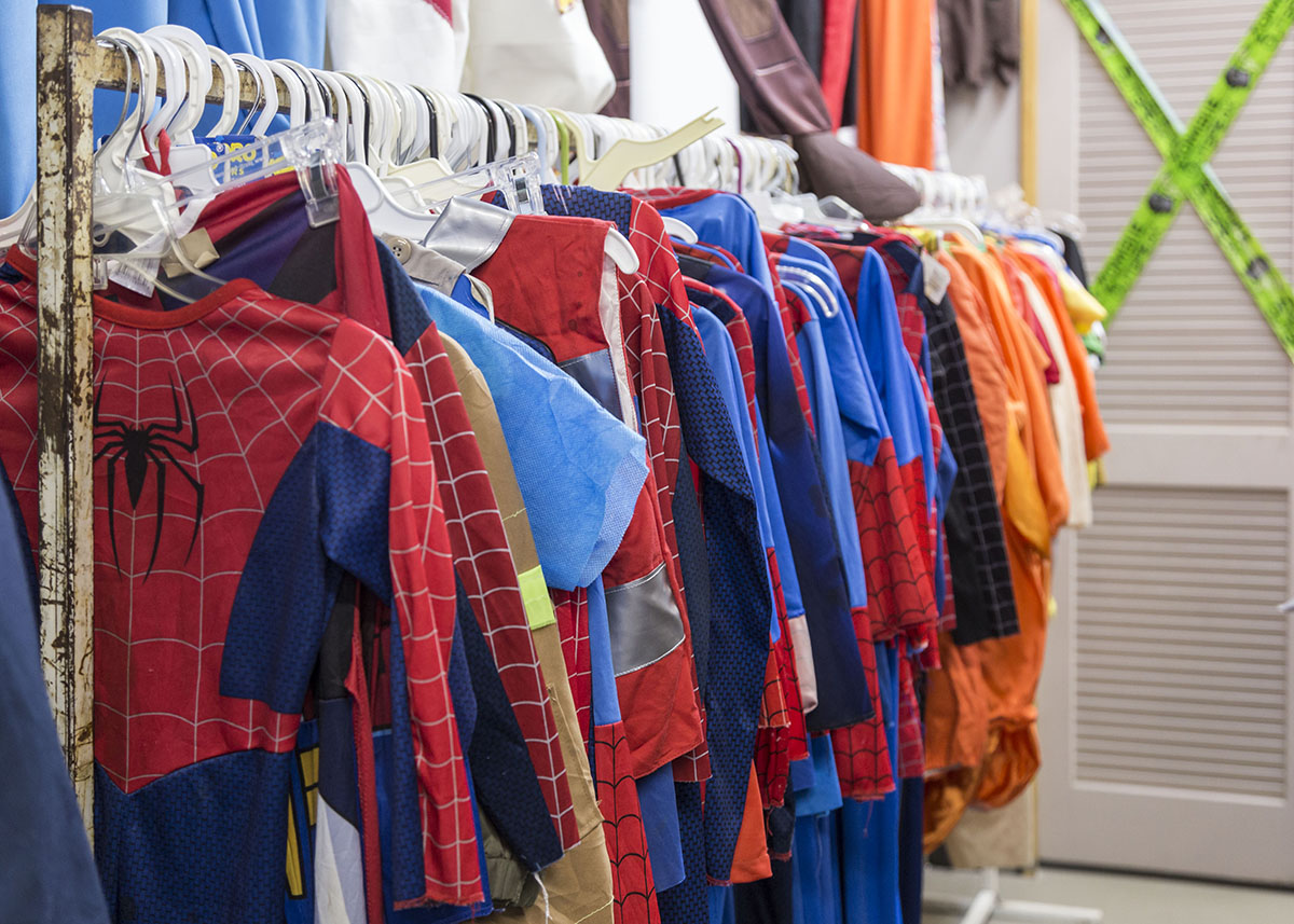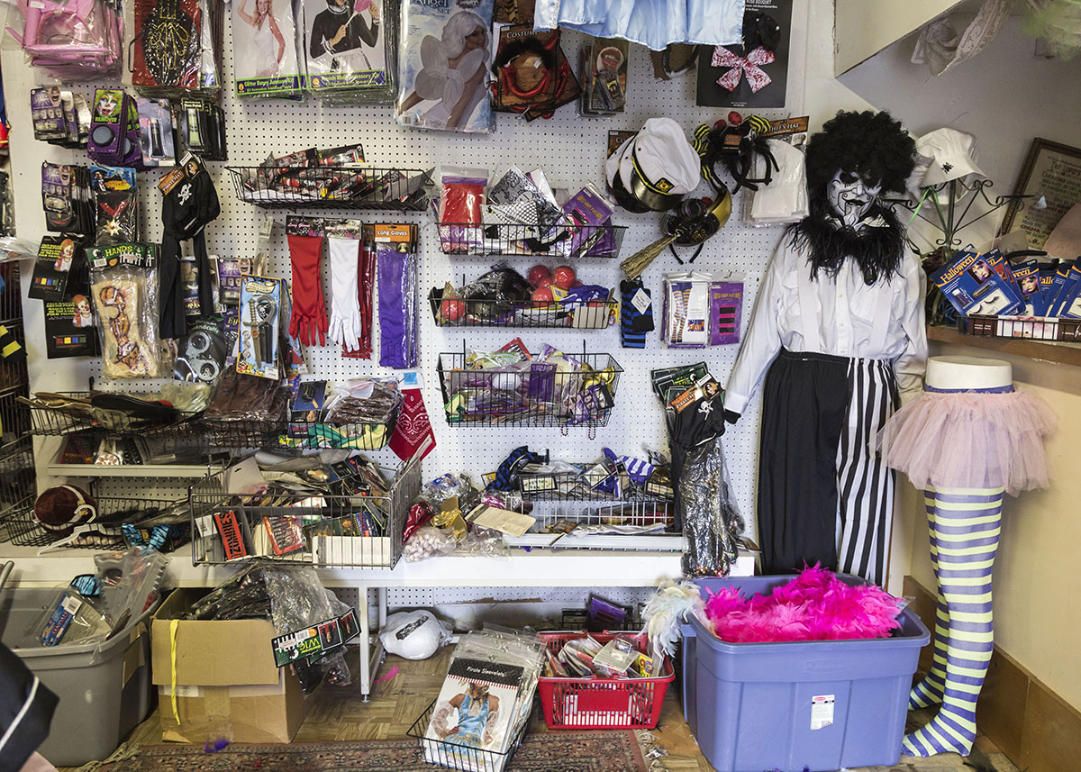 Catalina Contreras opened a thrift store in the corner space about 11 years ago. Halloween business kept growing until it completely took over three months of the year. Now the thrift store closes for the month of August so workers can switch over to all costumes. The shop has something for everyone — fuzzy baby costumes, super hero get-ups, sexy outfits, clown garb, wigs, hats and props galore.