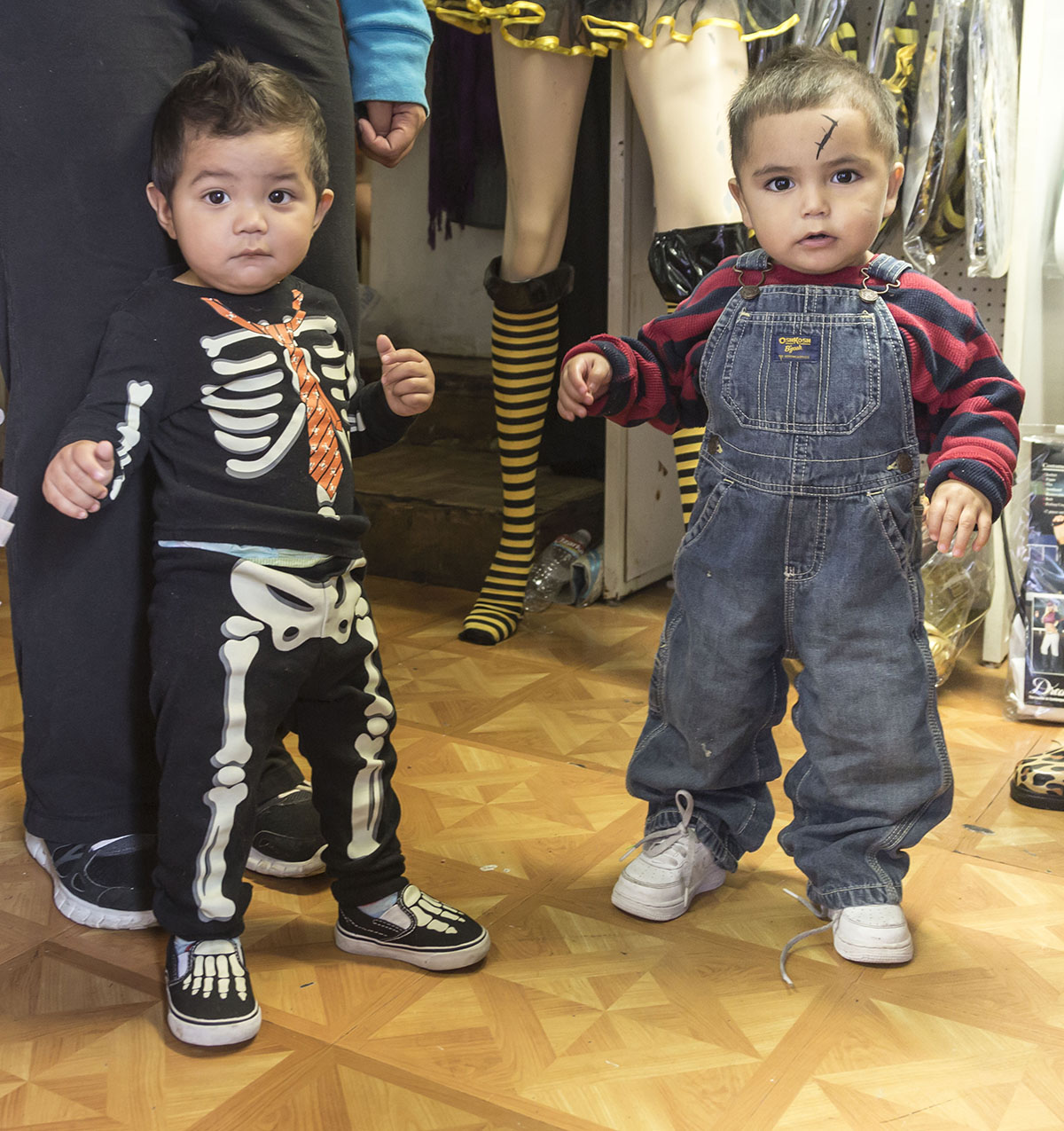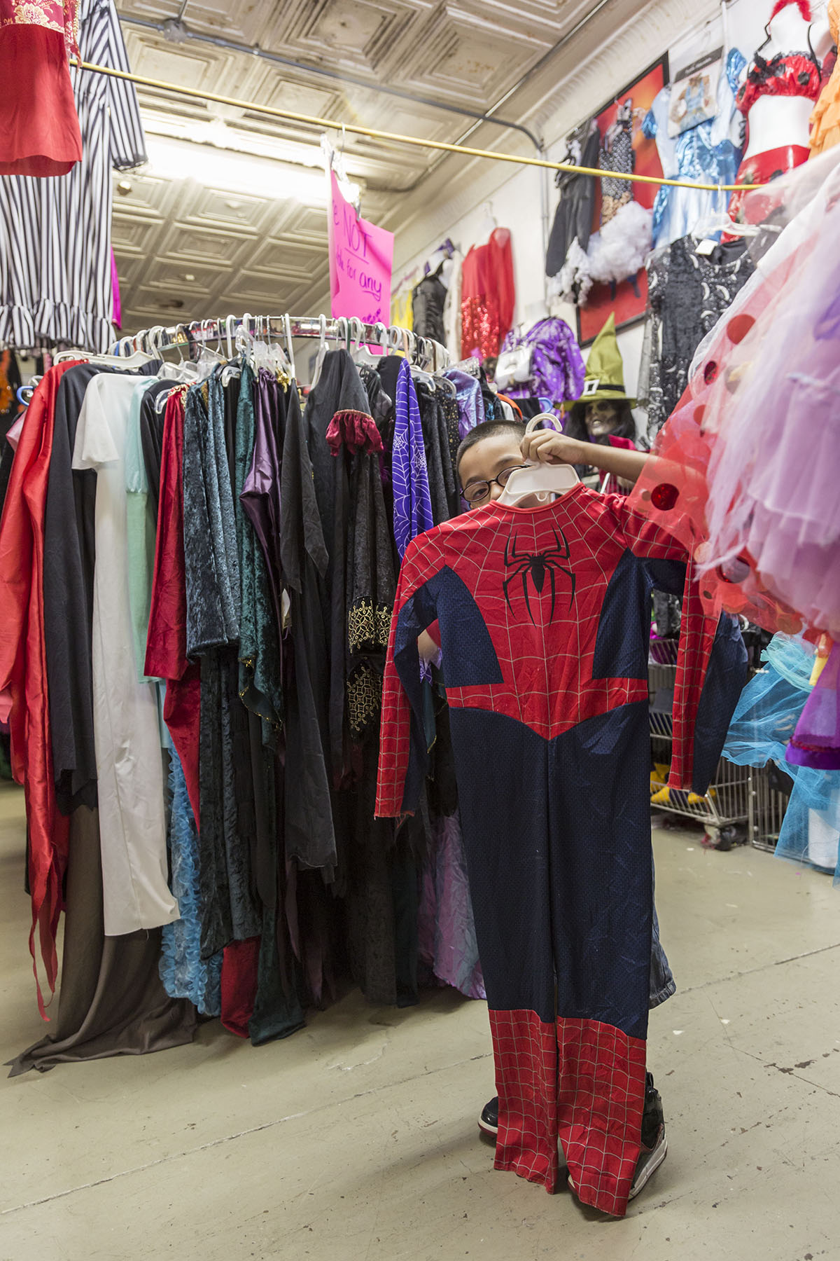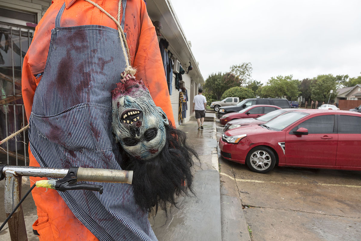 Catalina Contreras opened a thrift store in the corner space about 11 years ago. Halloween business kept growing until it completely took over three months of the year. Now the thrift store closes for the month of August so workers can switch over to all costumes. The shop has something for everyone — fuzzy baby costumes, super hero get-ups, sexy outfits, clown garb, wigs, hats and props galore.