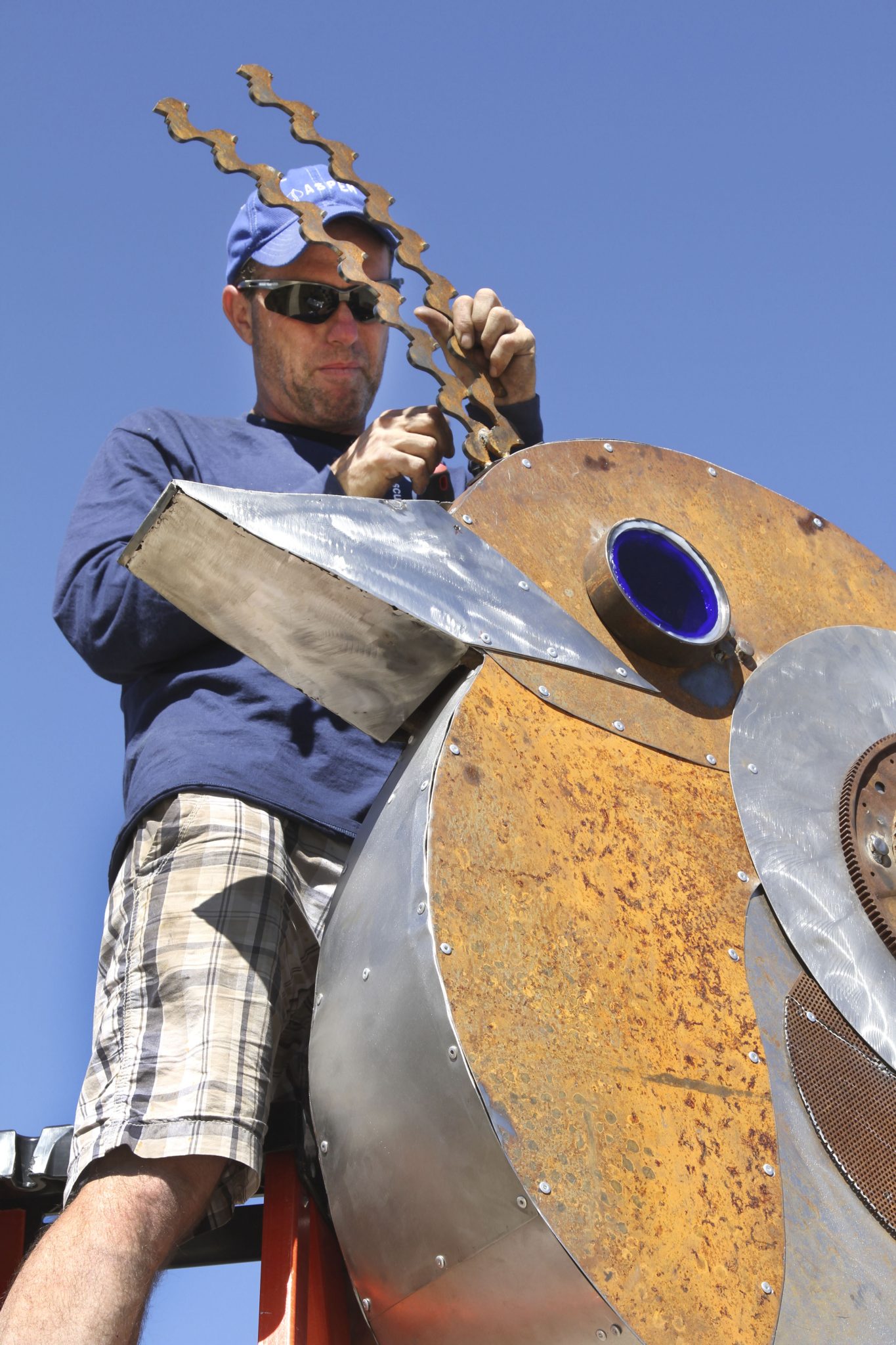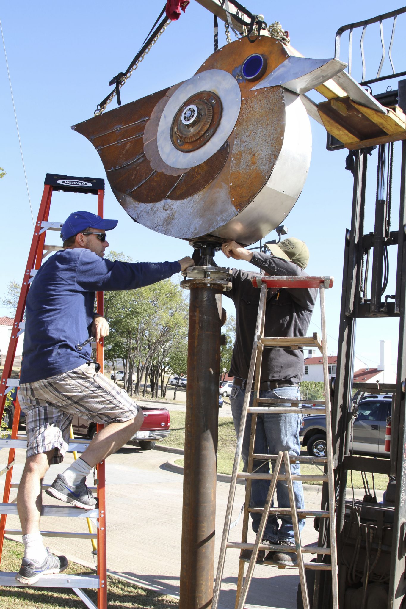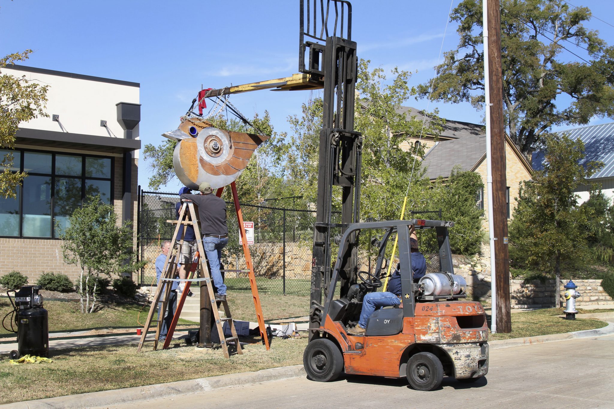 Artists Scott Shubin and Juli Hulcy-Kessinger won the Fort Worth Avenue Development Group’s Spare Parts public art grant for their “Steam Punk Bird.”
