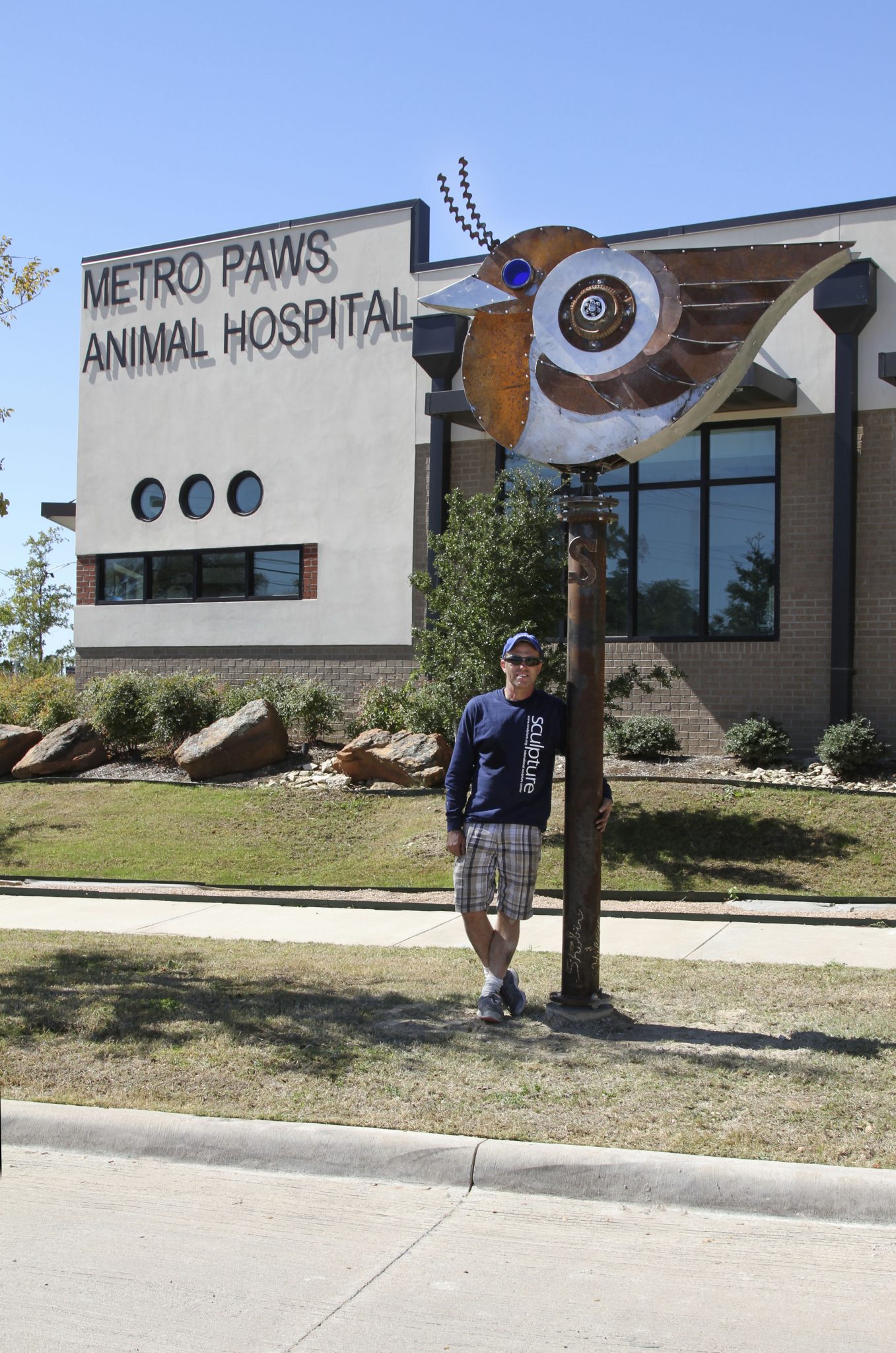 The artists installed their sculpture near Metro Paws Animal Hospital Thursday.