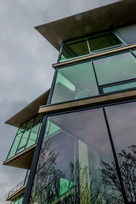 More accurately, it is the biggest, most energy efficient home in West Dallas. The house, with its cantilevers and glass walls, has spectacular views of Dallas.