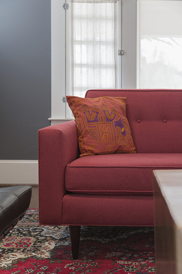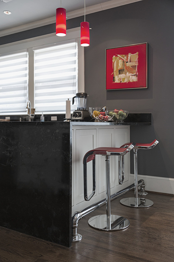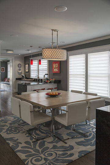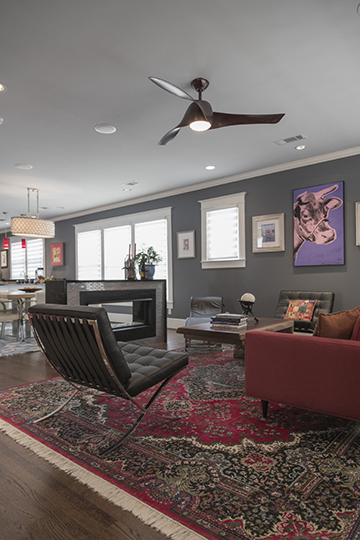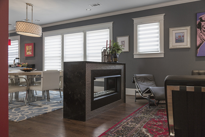 The homeowners frequently entertain, and their sitting room offers a space that is inviting and comfortable yet modern. A ventless fireplace separates the sitting room from the dining room. Photo by Jeanine Michna-Bales