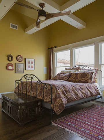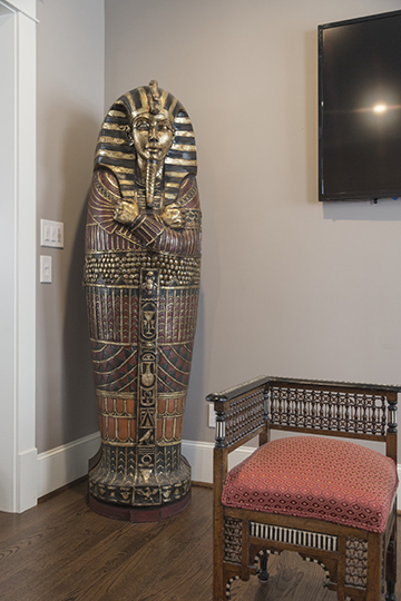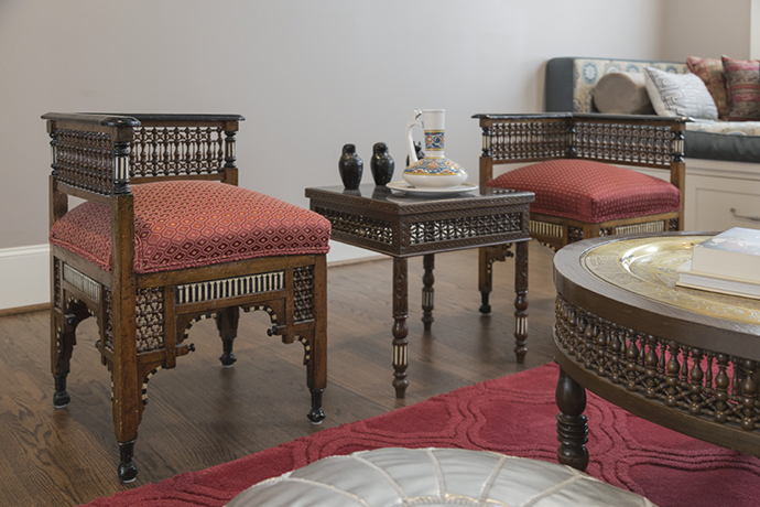 The home’s former master bedroom now is a cozy media room that highlights treasures from the couple’s travels in northern Africa. Photo by Jeanine Michna-Bales