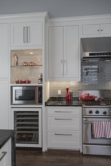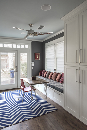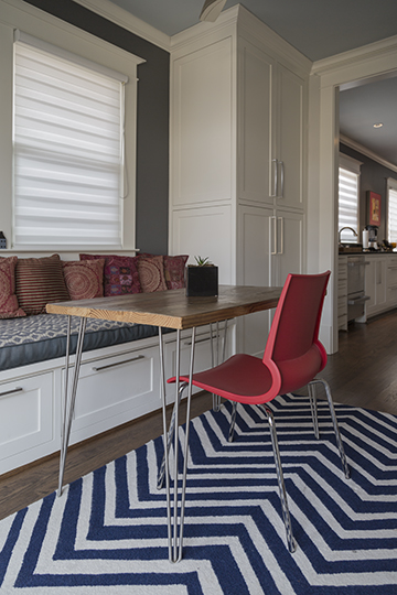 They kept the kitchen fairly small but functional. They opted for a 27-inch refrigerator, built into the cabinetry, in order to stay within the lines they wanted. The small fridge is not optimum for the home’s resale value, and it’s just one example of how they designed the home for themselves.