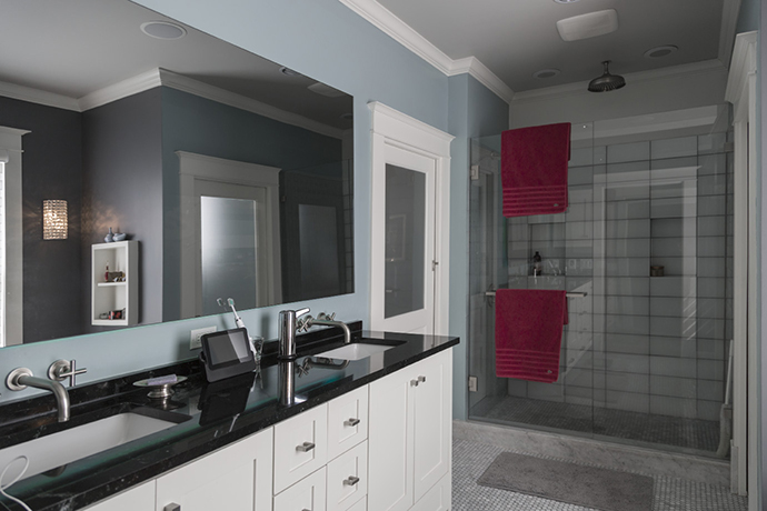 The home is fully automated, too. Baca and Breedlove don’t set alarm clocks because at 7 a.m., the shades in their bedroom at the back of the house automatically roll up. The bathroom’s heated floor turns on, and a few minutes later, TVs in the bedroom and bathroom switch on to CNN.