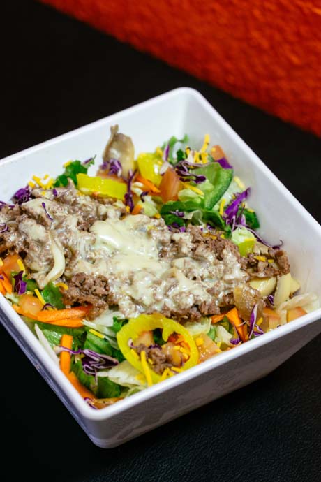 Cheesesteak burger, cheesesteak salad and the classic cheesesteak: Photo by Kathy Tran