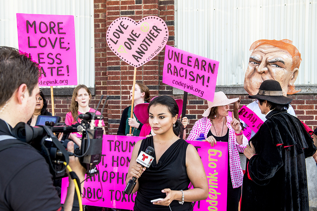In concert with a fundraising campaign, presidential candidate Donald Trump held a rally at Gilley’s. Thousands attended the event and a nearby protest. Photo by Danny Fuglencio