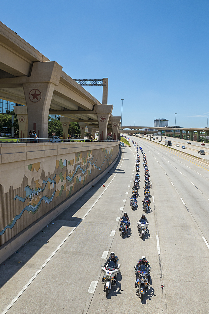 The funeral procession for Dallas Police Sgt. Michael Smith was seen streaming eastbound on Interstate 635 near Schroeder Rd. Photo by Danny Fulgencio