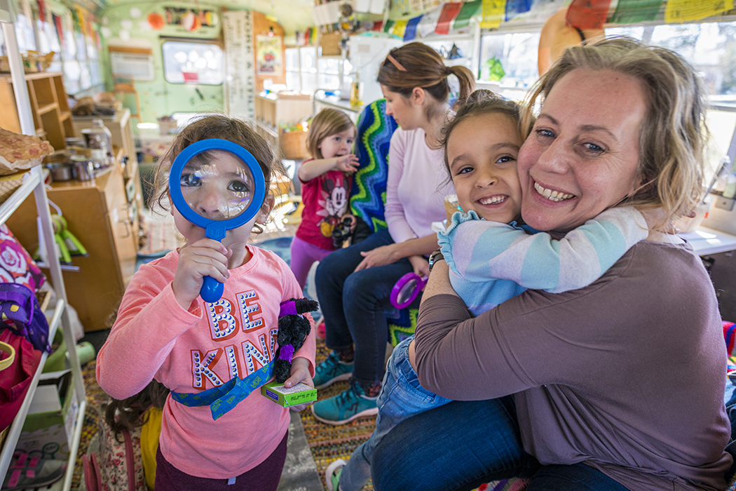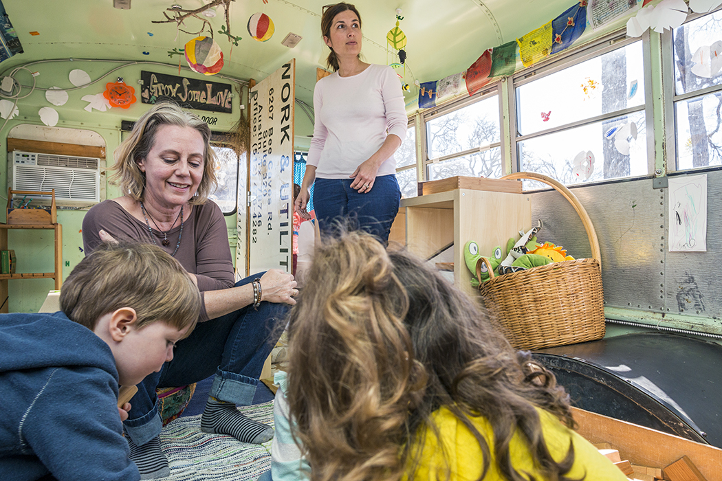 Seed Preschool’s moveable classroom is a bus named Matilda. Photo by Danny Fulgencio