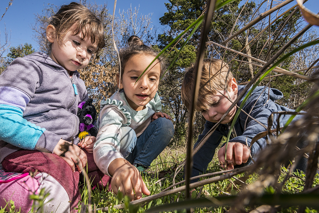 The Seed Preschool students get to safely enjoy the unpredictable natural materials and surfaces that Mother Nature provides. A giant fallen tree branch becomes their seesaw. Five tree stumps turn into a three-child jumping game. Sticks are magic wands and reindeer antlers. Butterflies and birds and cloud formations become lessons of the day.