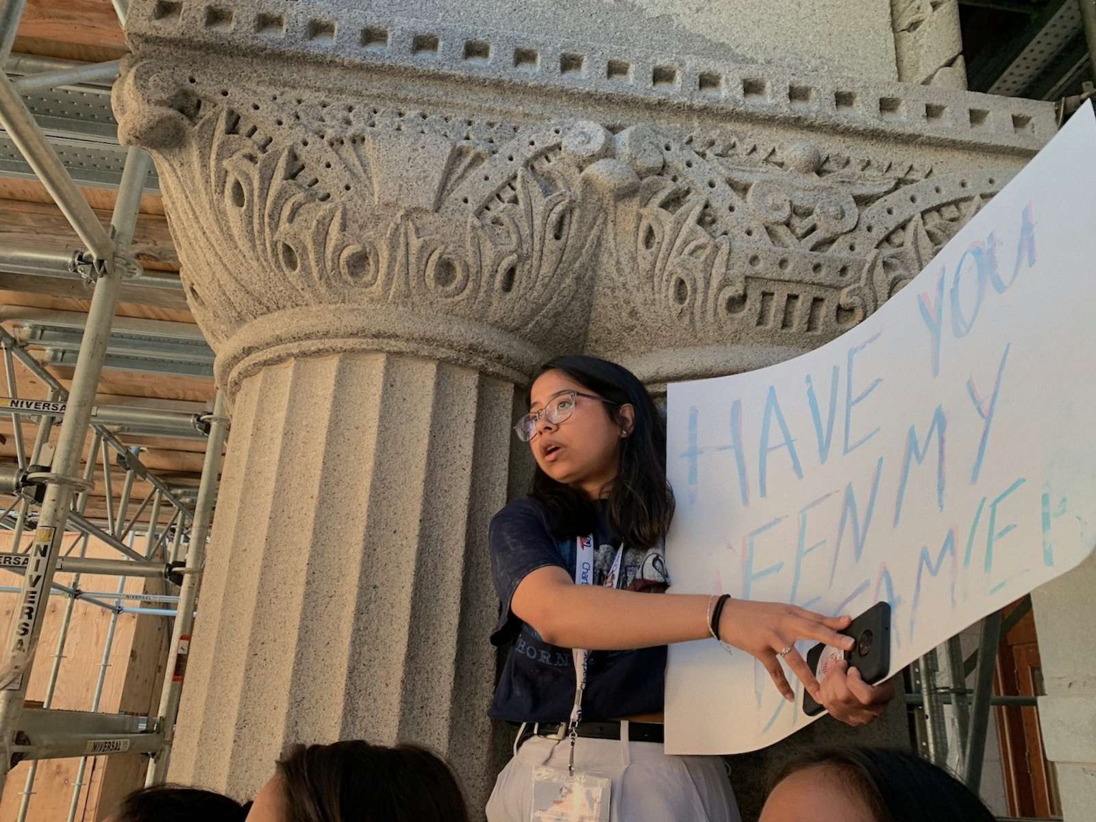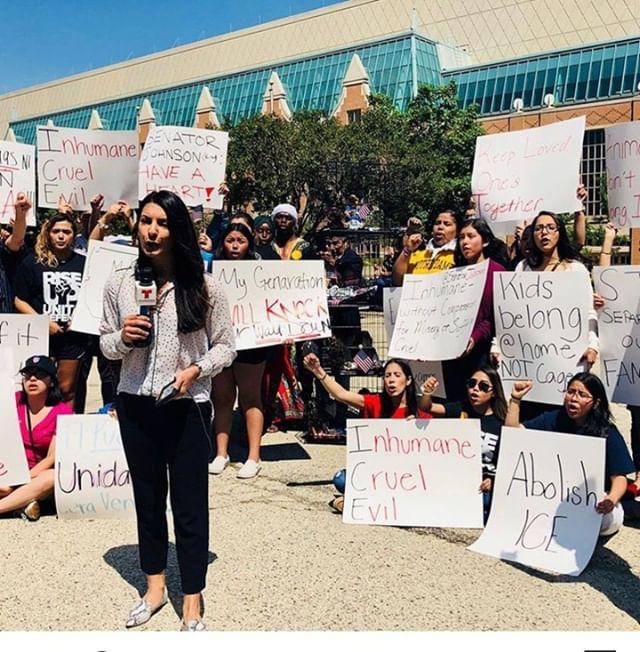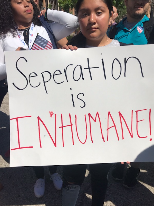 The senator’s refusal to meet with students only made them yell and chant louder. More than 100 protesters chanted “No cages, no walls,” “Free the kids now” and “No Trump. No KKK. No racist USA.”