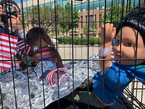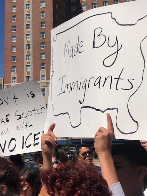 The students arrived at Johnson’s office with dolls in cages, aluminum foil wrapped around them, American flags, and posters that read, “My generation will knock your wall down” and “Government is like scotch, best with no ICE.” Students wanted their voices heard.