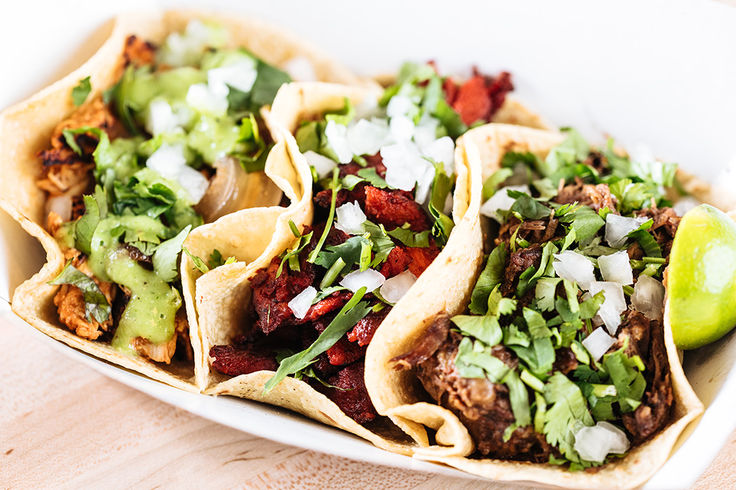 The trompo slider comes with a burger patty, trompo meat, mozzarella and salami. The restaurant also offers daily specials, such as crispy-shell tacos dorados, and brunch on Sundays. Don’t expect eggs at this brunch, though. Anyone can make eggs at home, Olvera says. Here, you will find three or four varieties of all-you-can-eat guisado. Recently it was chicharón en salsa verde, albondigas soup and carne en su jugo. Brunch also features picadillo tacos and chorizo con papa, plus three other specialty tacos.