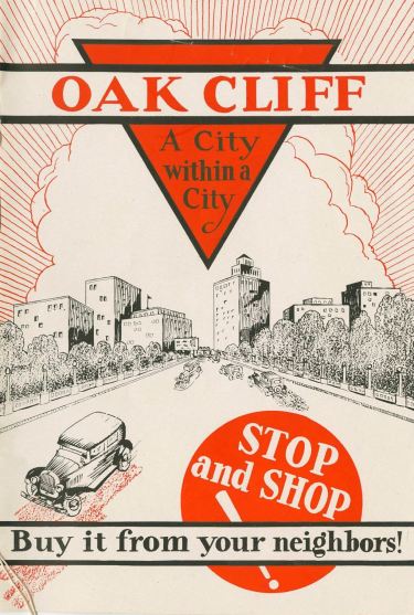 - BOOKLET COVER Oak Cliff: A City Within a City, has the tagline “Stop and Shop — Buy it from your neighbors!”