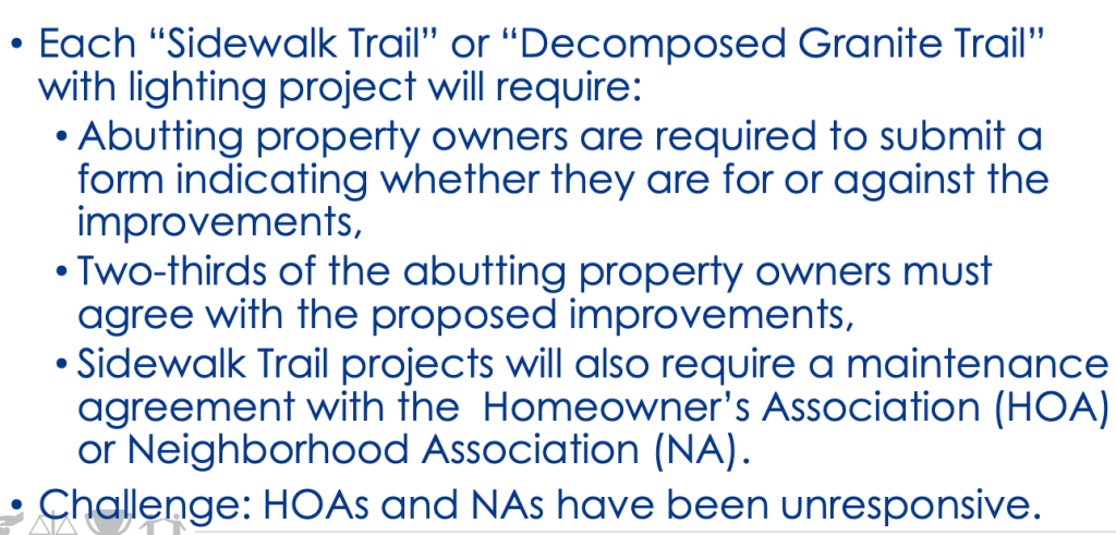 The city is contacting neighborhood associations and all of the more than 530 adjacent property owners in an effort to gain their involvement. It’s use it or lose it. Any of the $4 million not spent on these projects because of a lack of neighborhood interest will be put into the Department of Public Works maintenance fund.