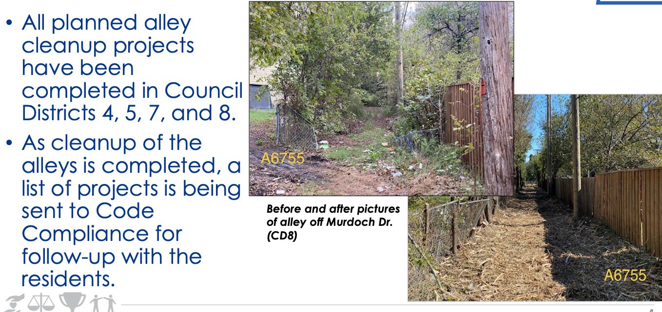 Since October, public works has cleaned 581 alleys.