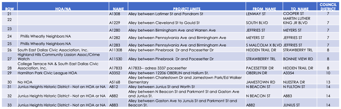 Another Oak Cliff location the city has selected for the program is in City Council District 4, near Deerpath Park, between Village Way and Stovall.