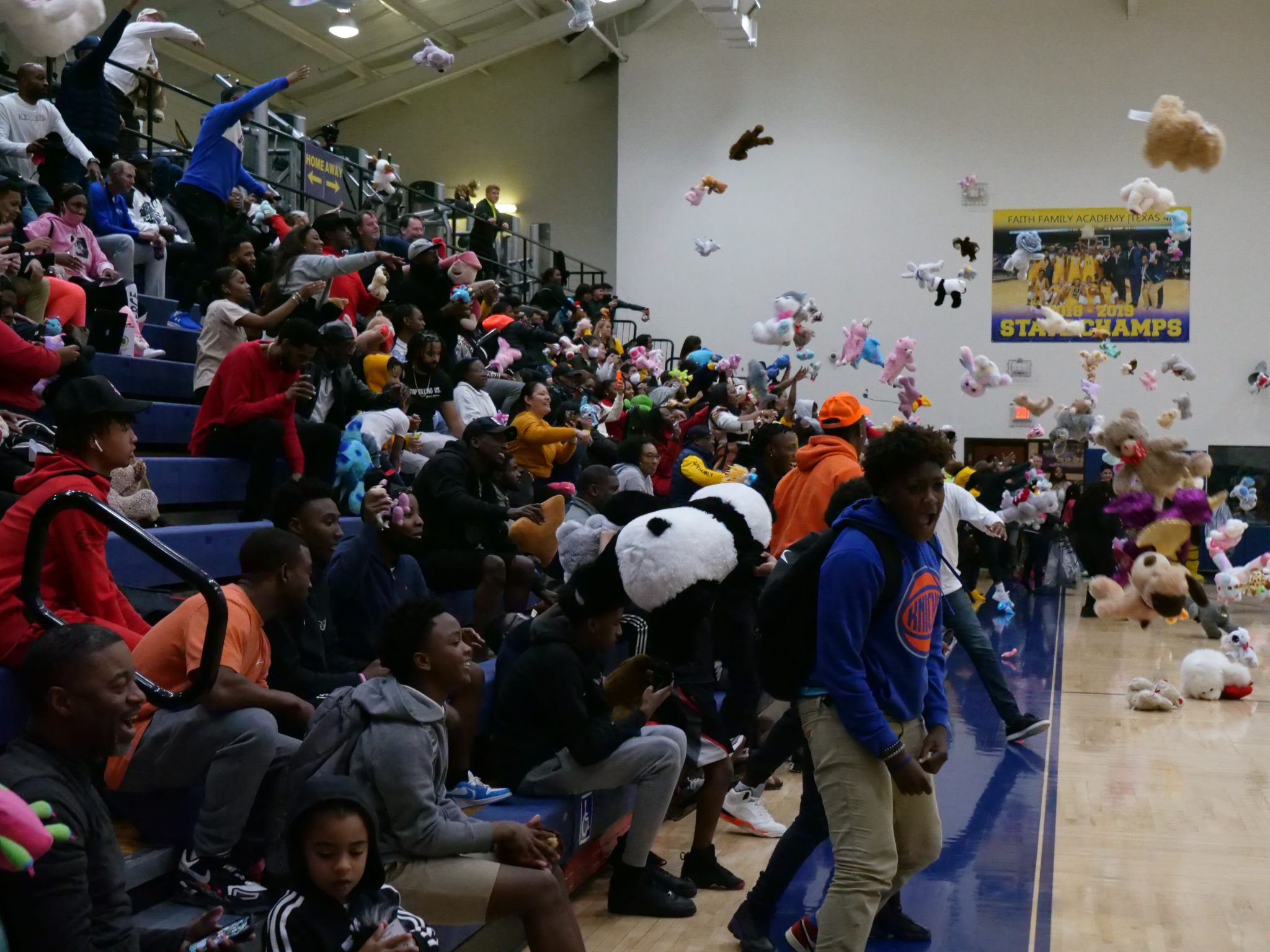 The teddy-bear toss, held at halftime, collected over 750 toys, which will be donated to For Oak Cliff, Dallas Fire Rescue, the Waxahachie Police Department and Ellis County Children’s Advocacy Center.