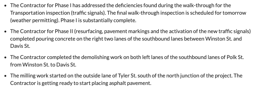 Pavement is going in on Tyler Street, and Polk is still under “demolition,” as seen in the photo above.