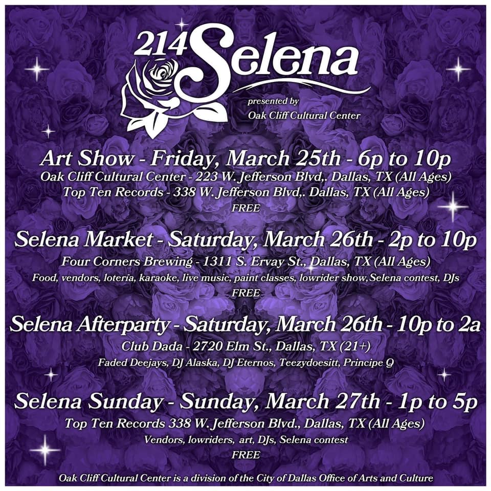 An art show at the Oak Cliff Cultural Center kicks off 214Selena, a thee-day tribute to the Queen of Tejano on March 25.