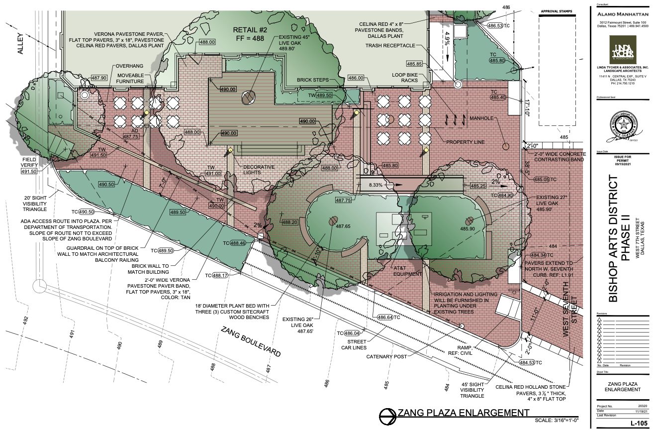 The Oak Cliff Gateway TIF board last month approved a $1.5-million agreement with developer Alamo Manhattan to design and build the plaza.