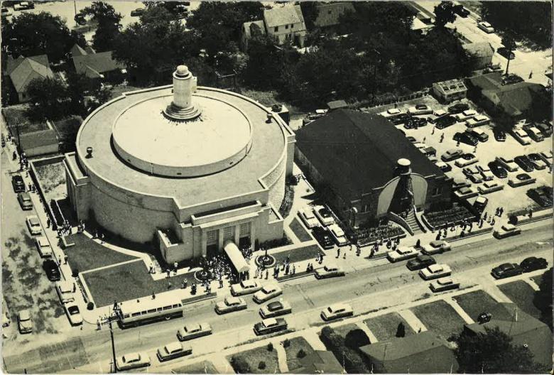 The original Gospel Lighthouse Church was constructed in about 1940, and the larger second church was built around 1950 at 1900 S. Ewing.