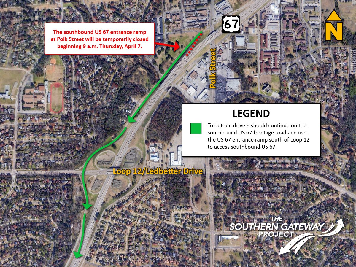 The on ramp to U.S. Highway 67 at Polk Street will close temporarily starting 9 a.m. Thursday, April 7.