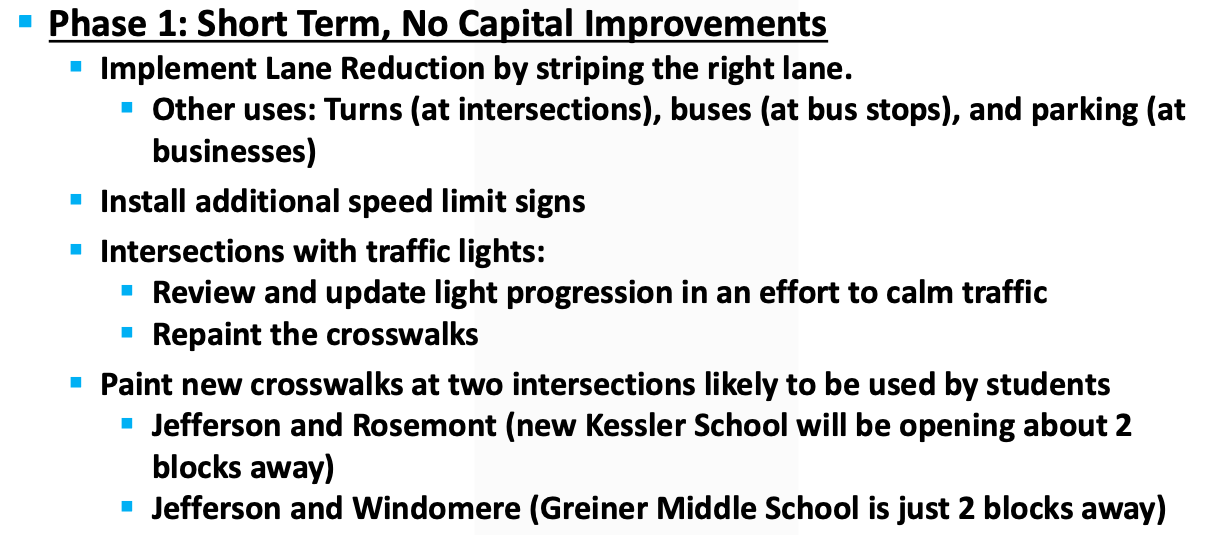 That’s why a neighbor-led task force recommended striping the far right lane of the six-lane roadway as the first phase of a lane-reduction plan.