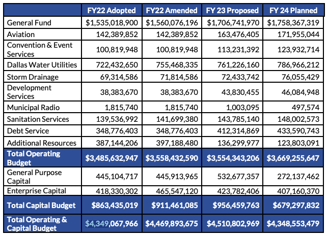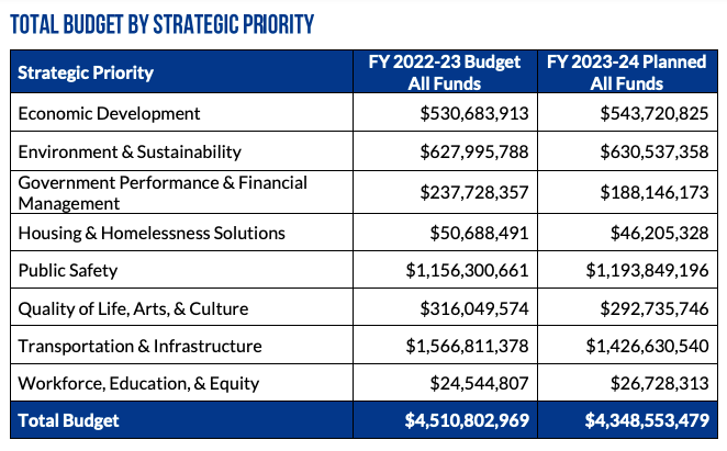 The Dallas City Manager today released the city’s proposed budget for 2023, totaling more than $4.51 billion.