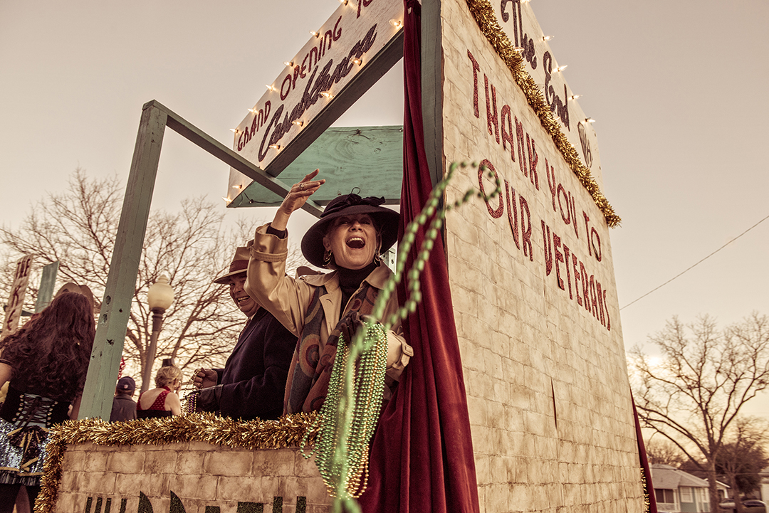 M is for Mardi Gras. The annual Oak Cliff Mardi Gras parade is the biggest fat Tuesday celebration in North Texas. The 2023 parade boasted 50 entries with floats, dance crews and marching bands, and hundreds of thousands of beads thrown, turning the neighborhood into a purple, green and gold colored fest.