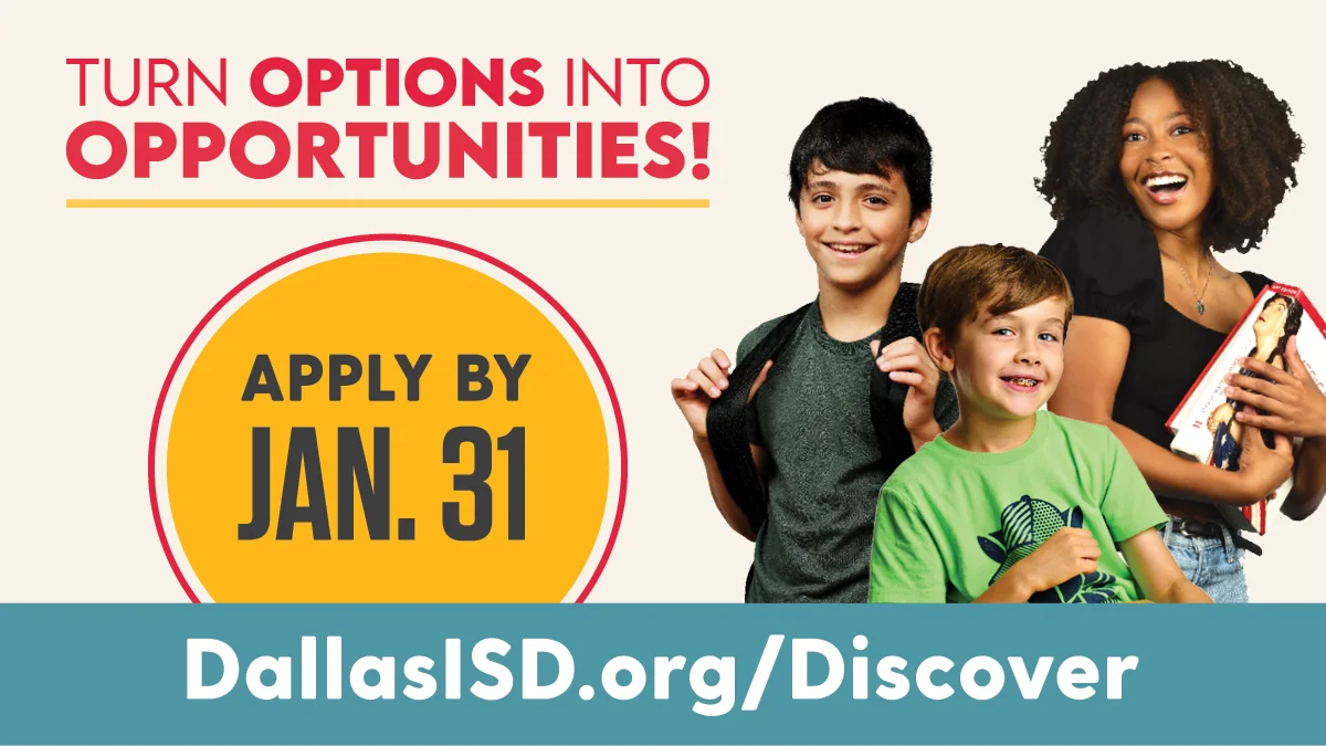 Applications for specialty schools now open: If your student or someone you know is interested in applying for a specialized program in Dallas ISD, check out our school choice options and start the application process here: Dallasisd.org/discover.