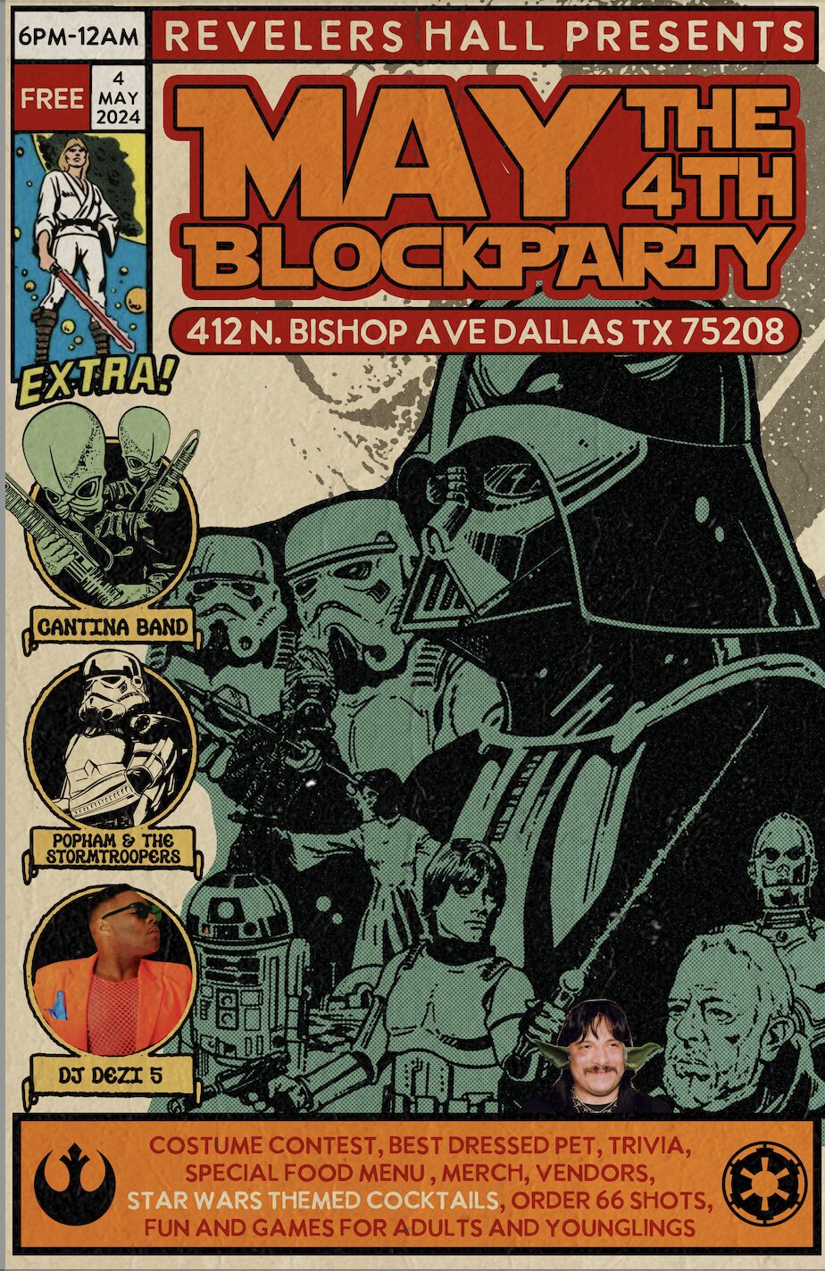 This Saturday, the jazz bar celebrates May The Fourth with a specialty themed menu of food and drinks. Rev’s promises live music from the iconic Star Wars Cantina Band, known as Figrin D’an and the Modal Nodes in franchise canon. Yeah, I don’t know how they’re gonna pull that off either. But it’s probably the greatest selling point ever, if not just to see how they’re gonna attempt it.