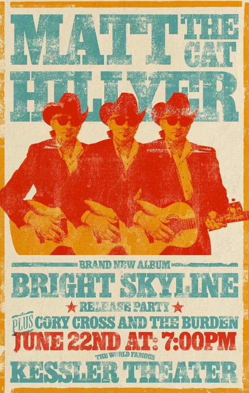 Tomorrow night, Hillyer takes the stage at the Kessler Theater for the Bright Skyline release party. Cory Cross and The Burden are set to open up the night. Doors at 7, music at 8 p.m. Tickets are available via PreKindle.