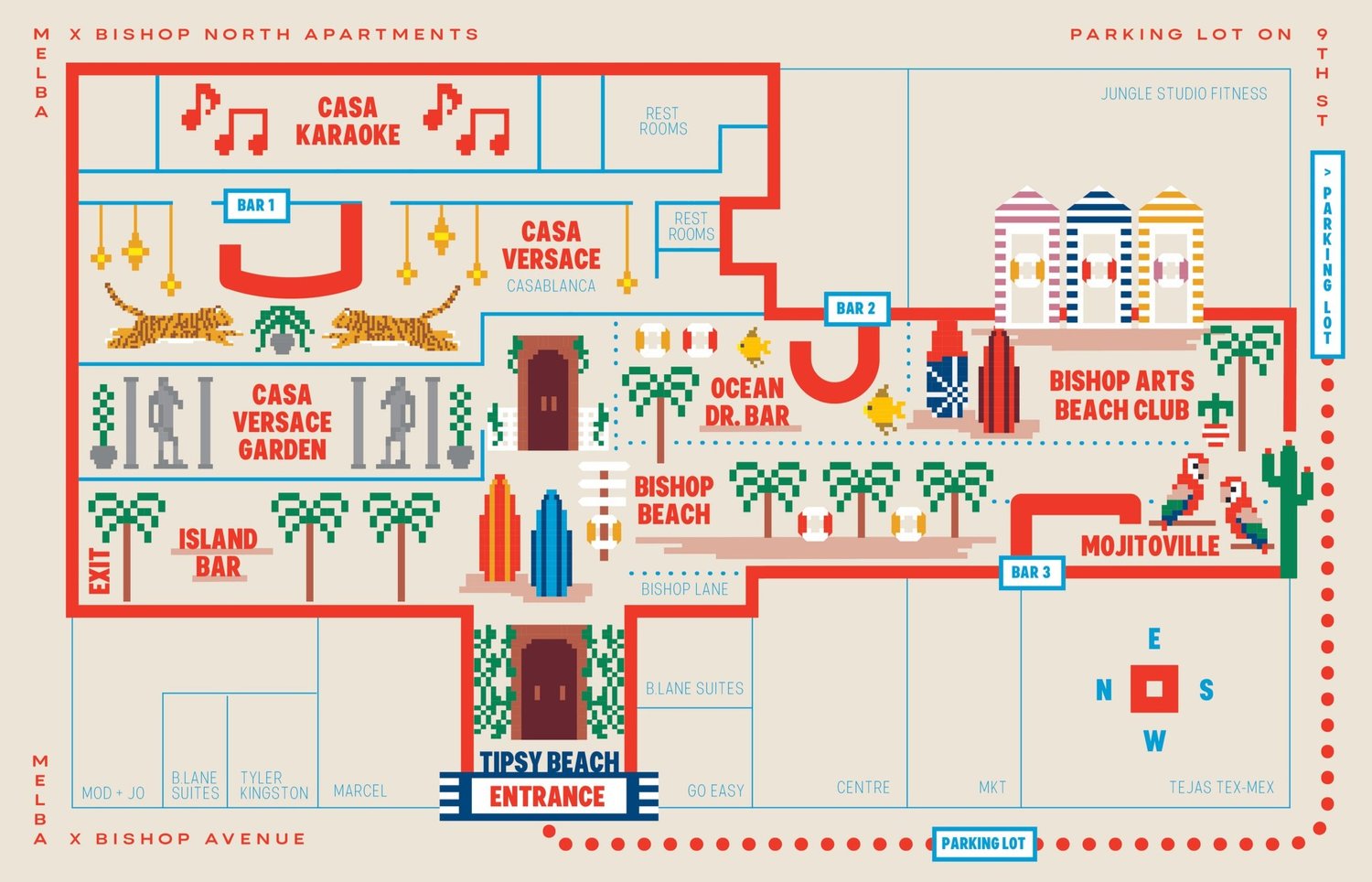 Bishop Lane will soon transform into a tropical paradise where you can enjoy the beachy vibes of the Florida coast at four experiential bars during Tipsy Beach.