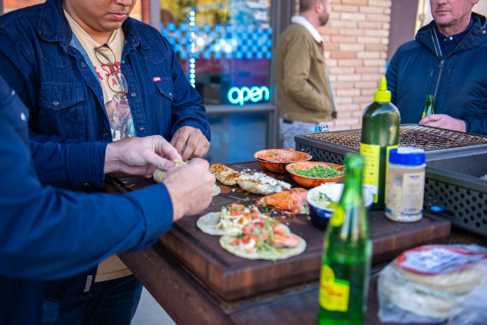 Two to three times a week, NOMAD grill set up outside their headquarters and cook for anybody walking by. Photography by Lauren Allen.