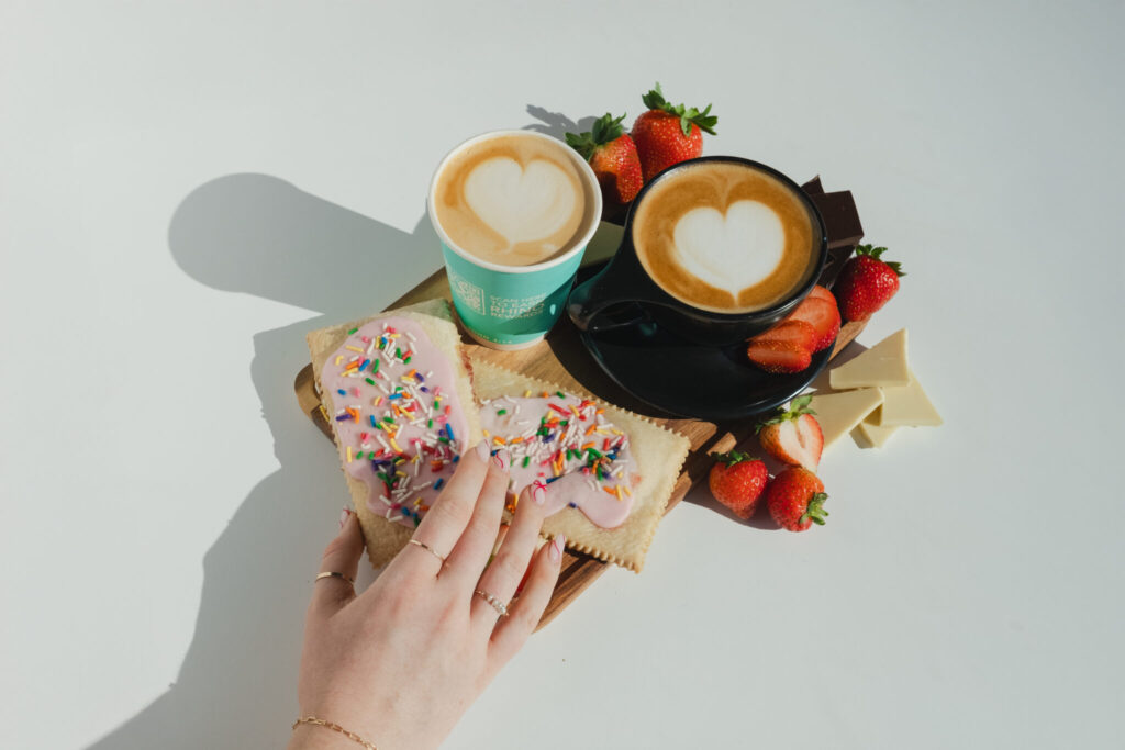 Limited-time menu items for Valentine’s Day include the Love Notes Latte – a chocolate strawberry latte; and the Vegan Strawberry Guava Pop Tart – a plant-based treat bursting with flavor.