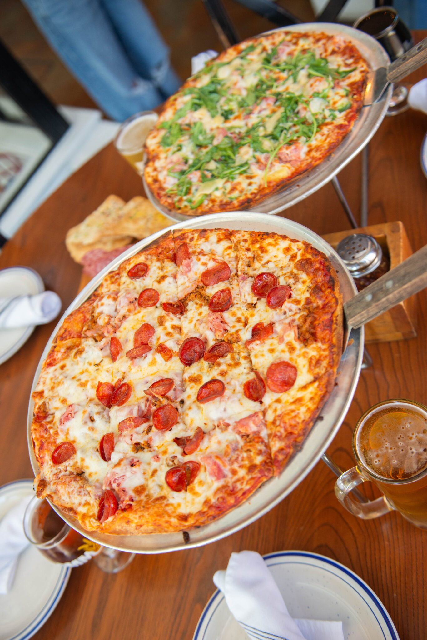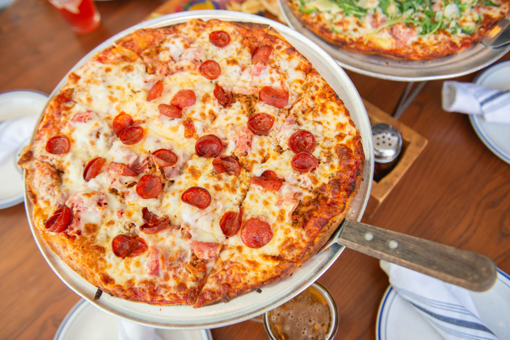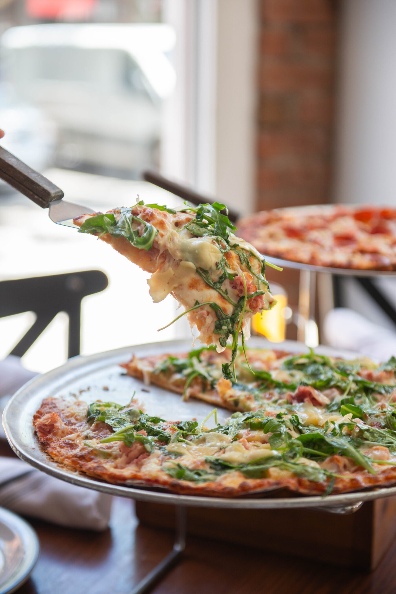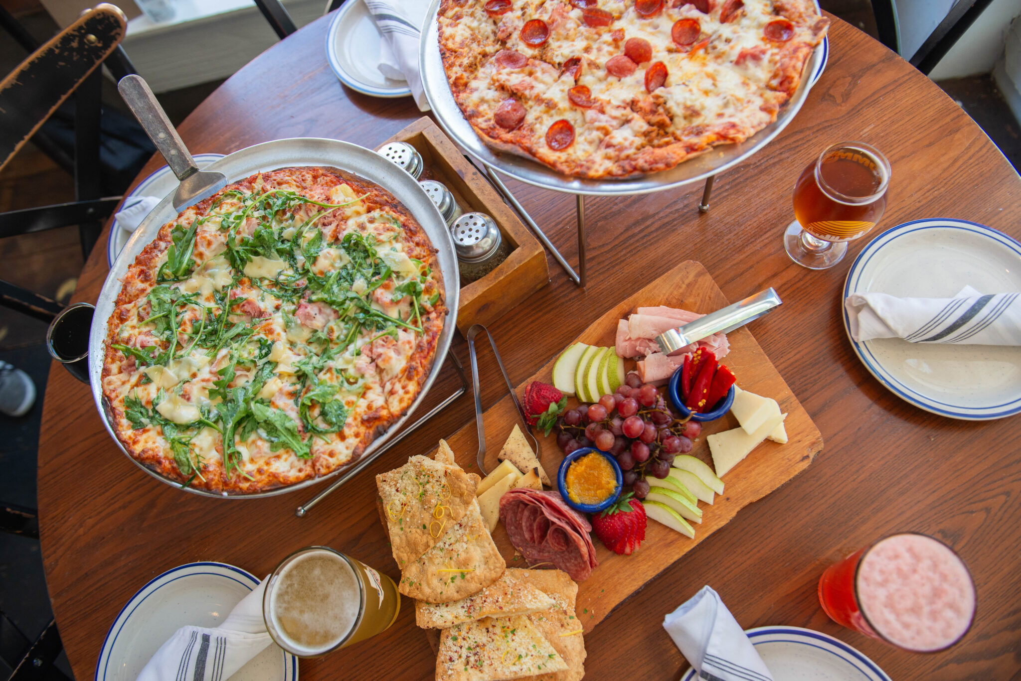 The pizza achieves that cracker-thin style and features farm-to-table ingredients. Toppings on their specialty pizzas include locally sourced pork belly, pancetta, sport peppers, fennel, artichokes, parmesan, mozzarella and goat cheese.