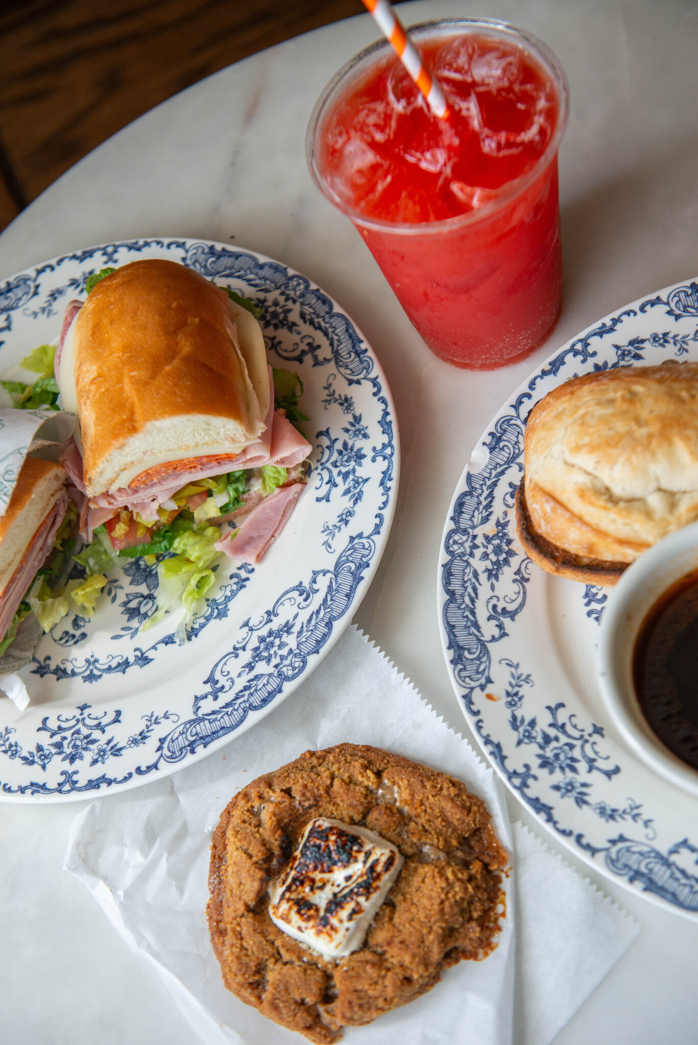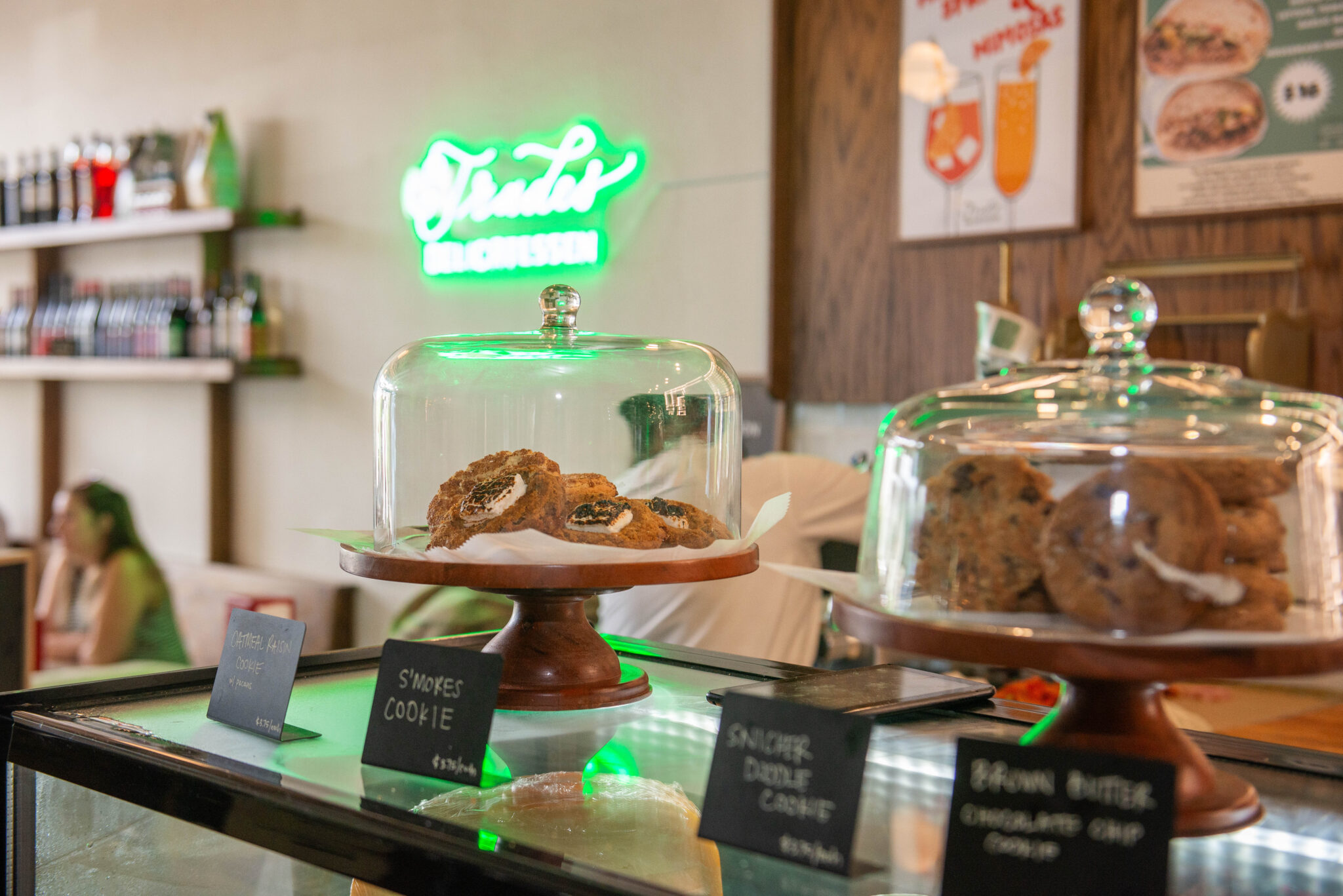 Trades opened at 312 W Seventh St. in February 2024 and offers a menu of breakfast bagels, schmears, bagel sandwiches, and hot and cold deli sandwiches. A soup and salad menu round out the lunch offerings, and decadent chocolate cake and a s’mores cookie with a toasted marshmallow in the center highlight the dessert options.