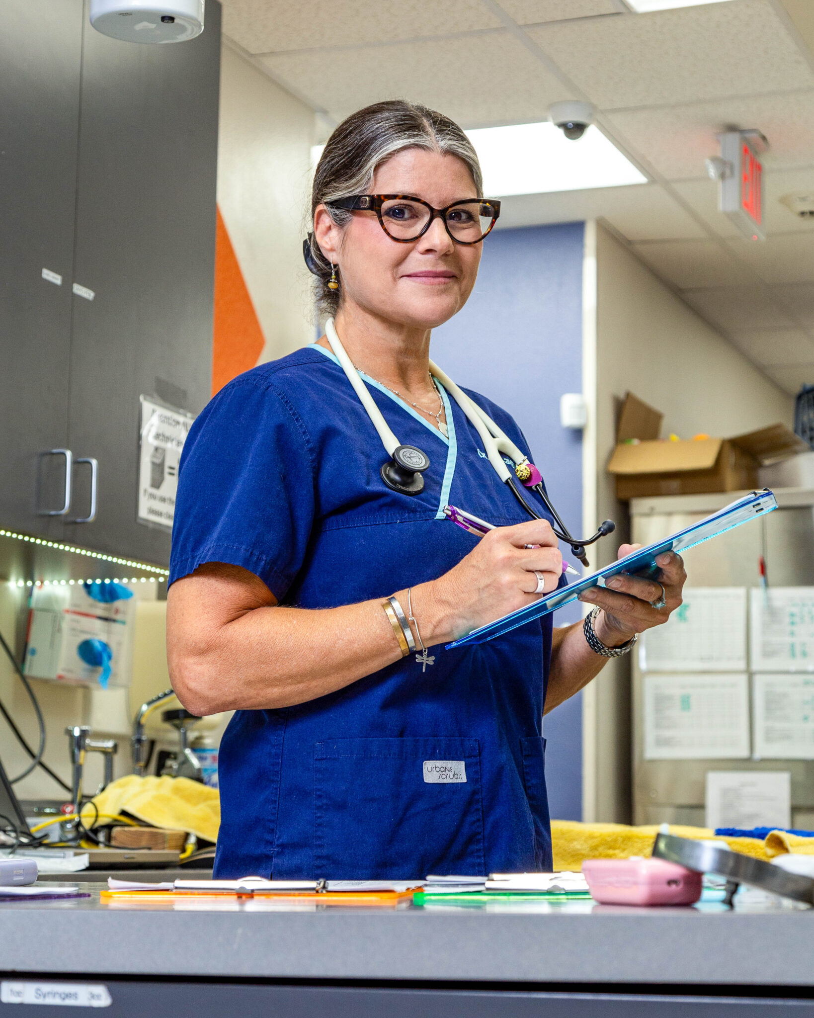 I was really fortunate that I’m a really stubborn person. If I’ve said, “This is the end, this is the finish line,” then I’m going to cross it. And so it was just kind of blind stubborn effort that got me through. It was kind of a crazy time. It’s so funny because I think looking back, I wouldn’t go back and change anything, but I sure don’t want to go back and redo it either. I’m pretty good with where I am today. One nice thing about vet med, too, is just that it can be a flexible career, as far as hours and kids. And so it’s been nice to be able to raise my kids as a single mom and have my job be something that kind of fits in line with that.