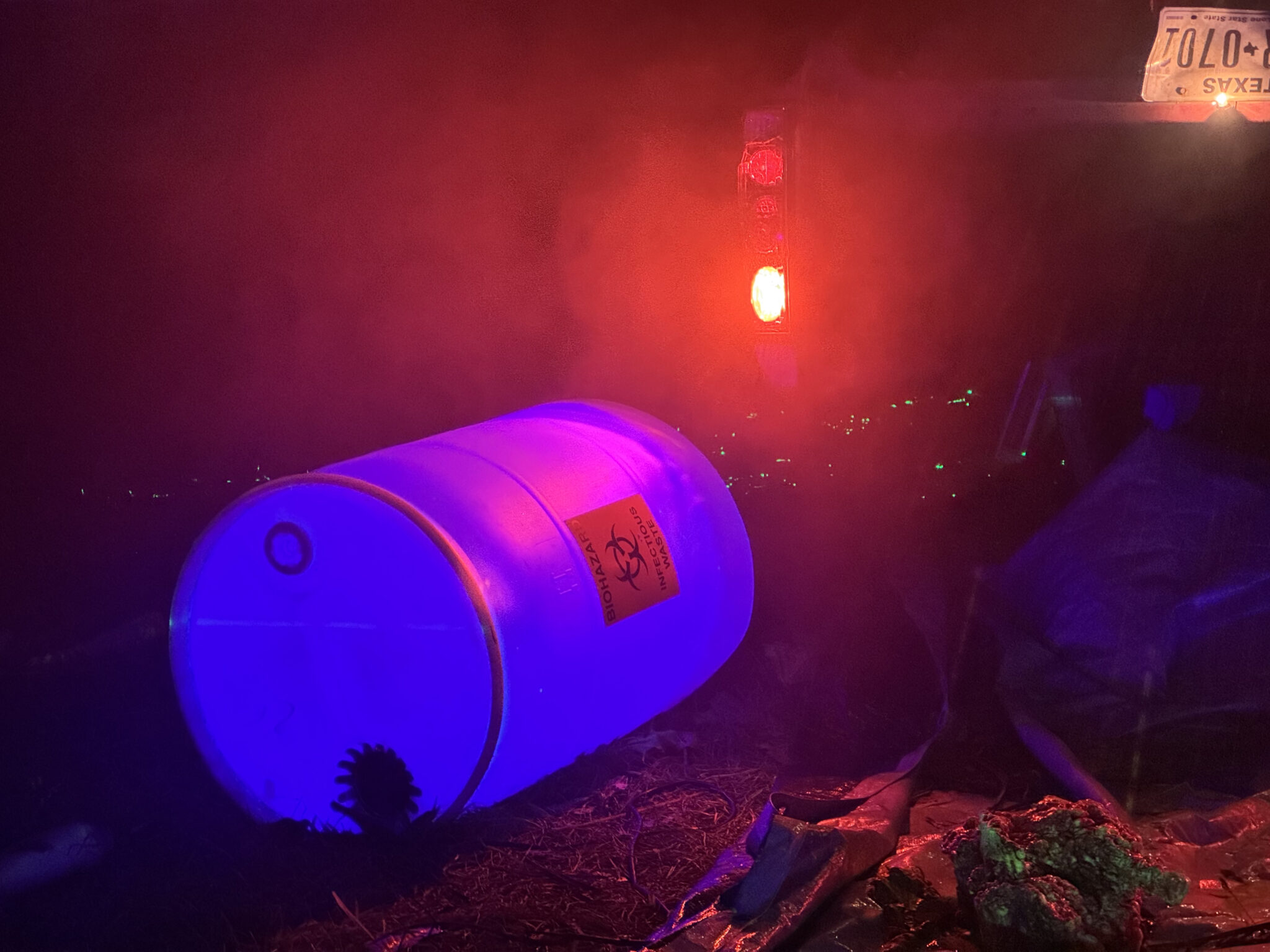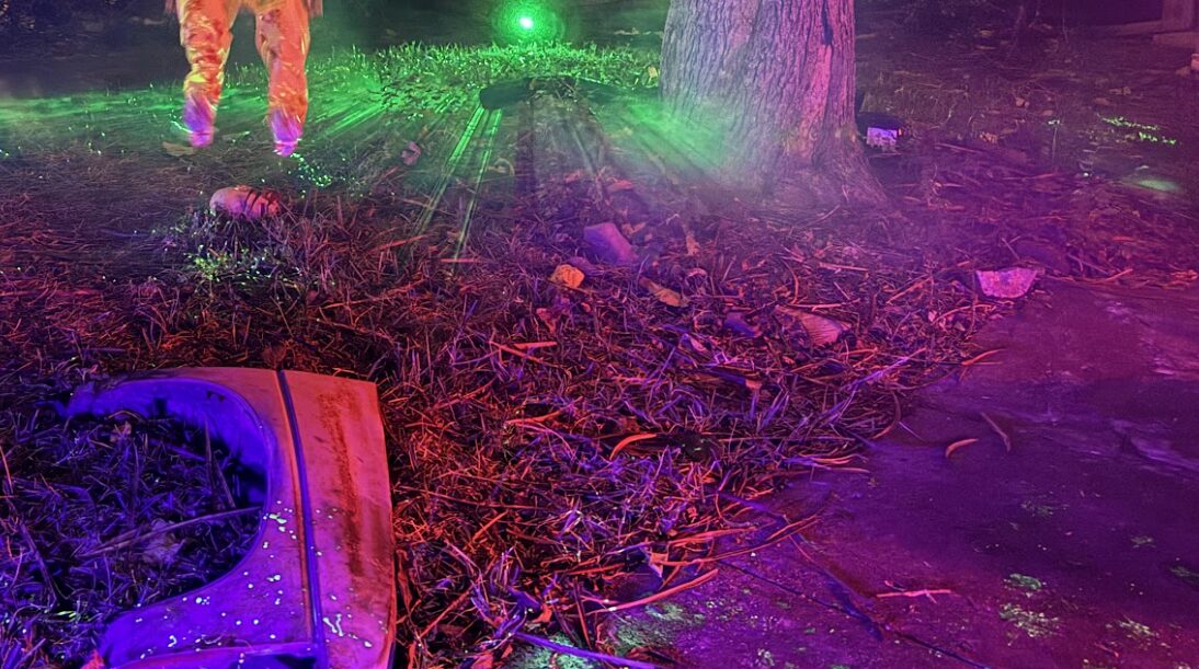 Steven Novak, an amateur artist and engineer, has put together an elaborate display of a zombie car crash for the Halloween season. The display of his zombies nicknamed after The Three Stooges is located at 1414 Lansford Avenue. Here are some scenes from the yard.