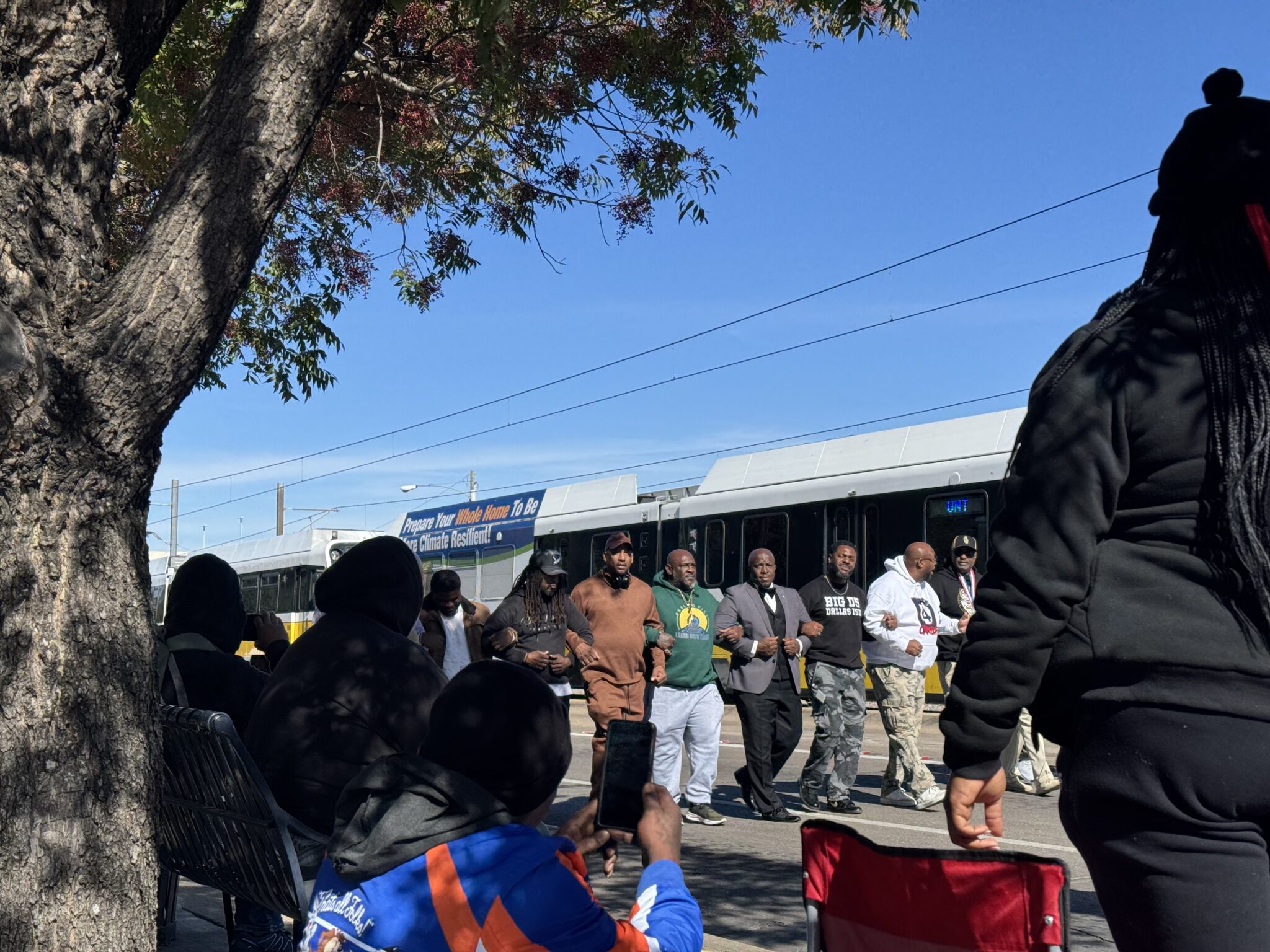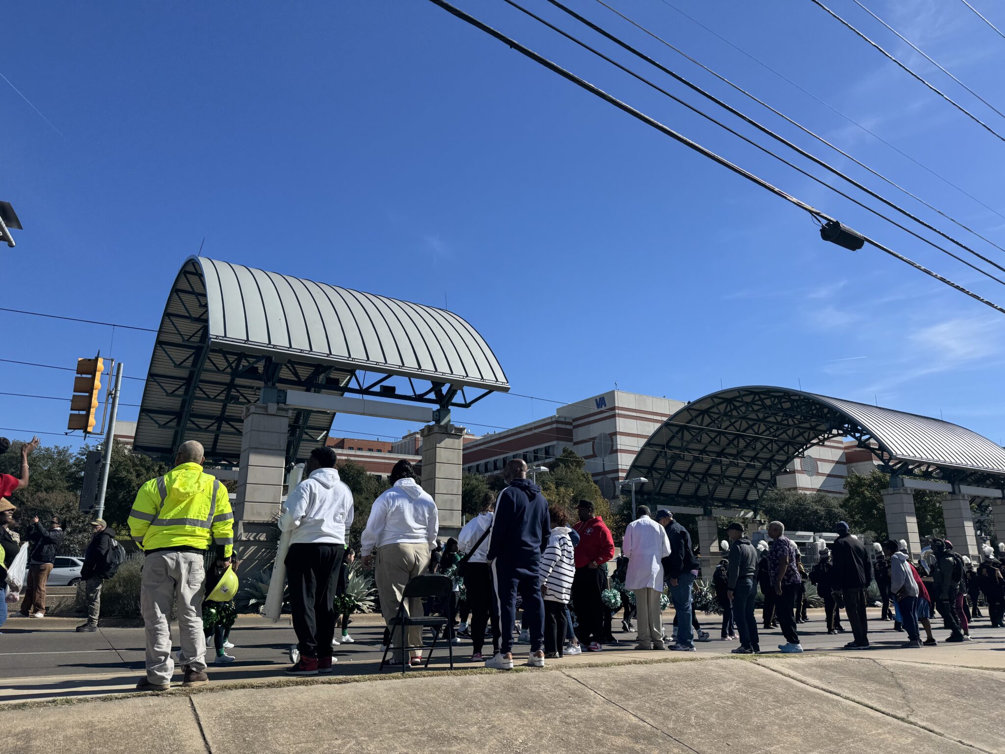 Community members gathering across from the Dallas VA Center to watch the Veterans Parade. Photo by Victoria Hernandez.