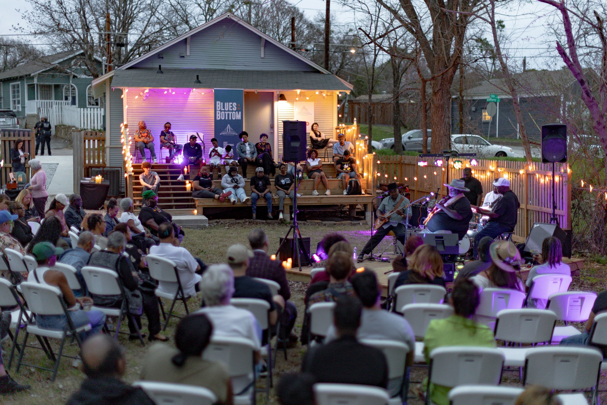 On Juneteenth in the summer of 2024, the backyard of what is affectionately known as the Little Blue House was filled with chitchatting and the swing of a tenor sax. It had been a while since residents visited the space, and it was the first time the Tenth Street Neighborhood Resource Center was open to the public.