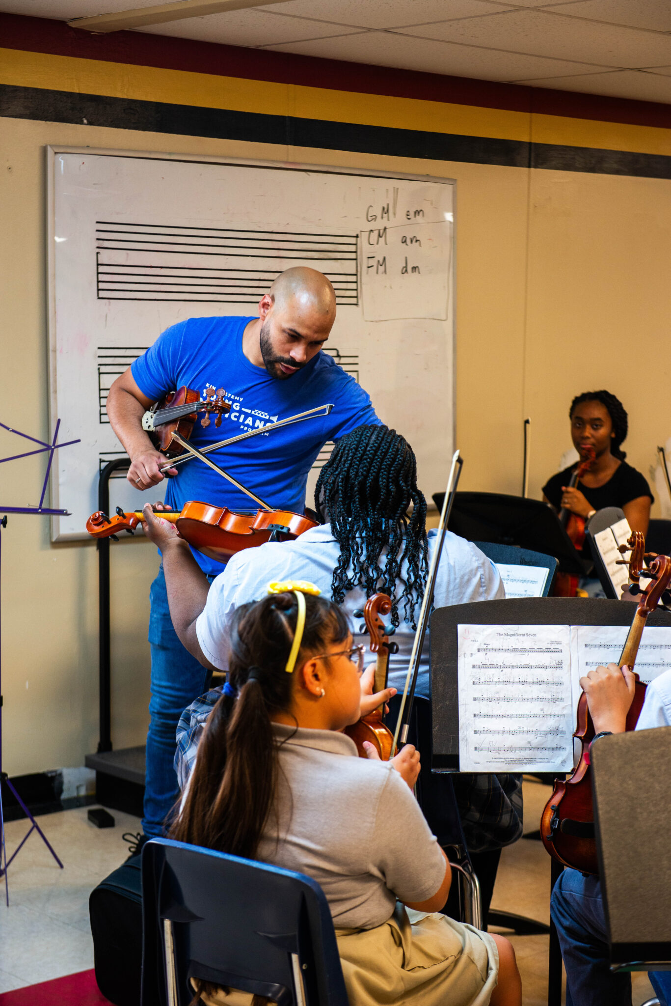 “Young Musicians is one of the most comprehensive and intensive programs we offer,” DSO Director of Education Jen Guzmán says. “We pay for the instruments, we pay for the teachers to provide the services, and in return, the school provides the spaces for us to use and the support that we need to function on site.”